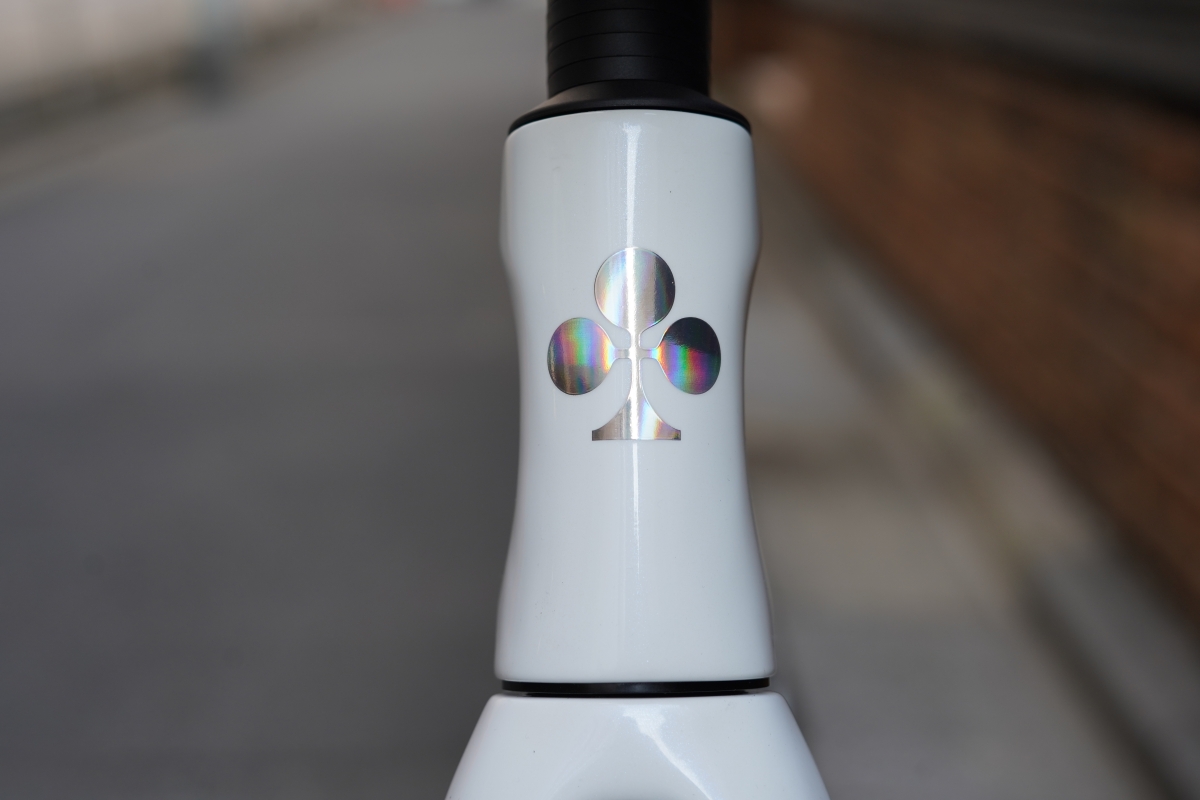 ヘッドチューブ周辺のケーブルがなくなり、お馴染みのクローバーマークもしっかりと見えます。