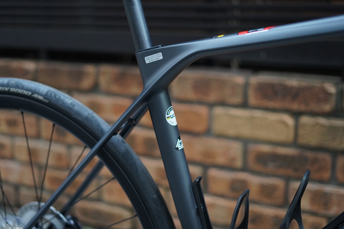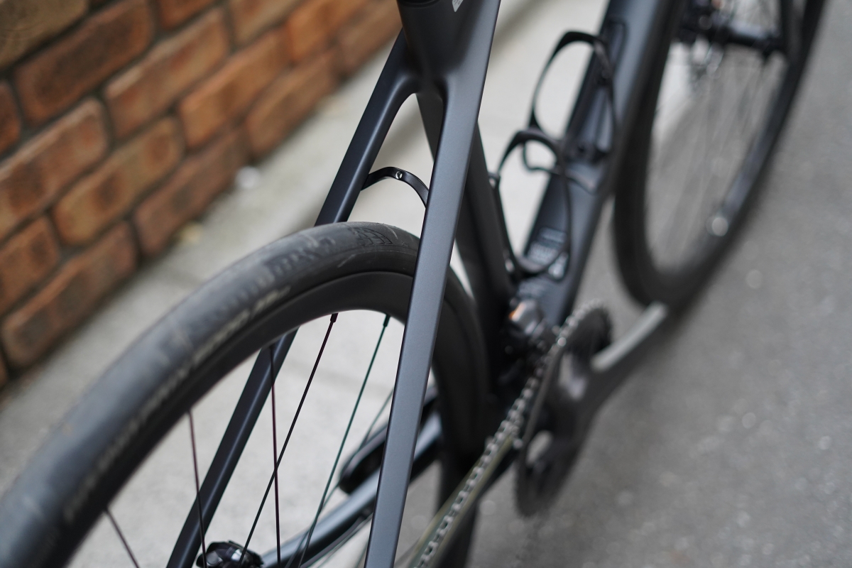 従来のモデルよりもトップチューブやシートステーを薄くすることで縦方向に突き上げを往なし振動吸収を狙っています。