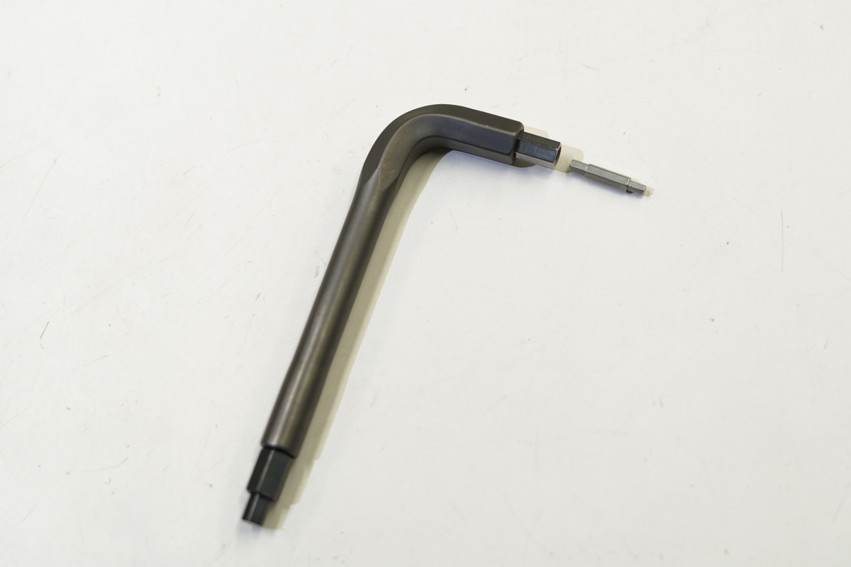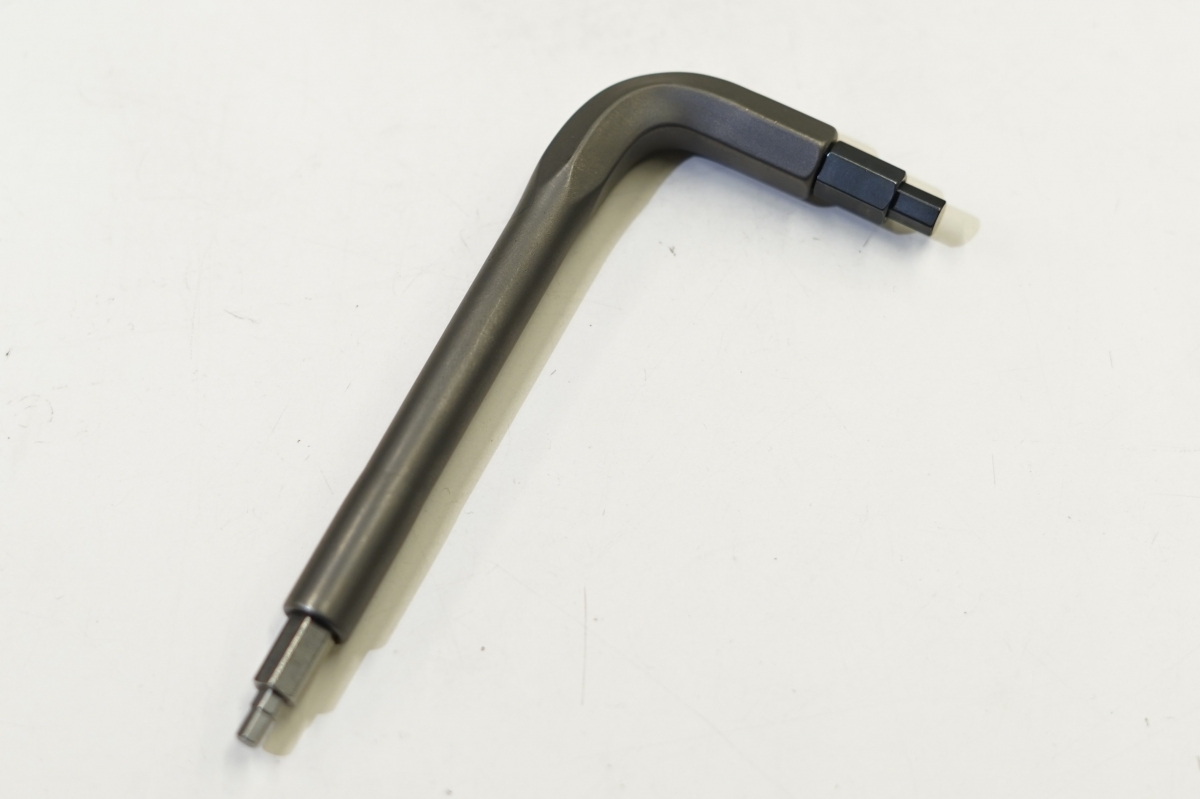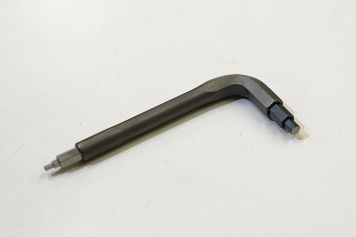 本体は一般的な六角レンチと同じL字型の形状なので、とても手に馴染む感覚。六角ビットはSWISS TOOLSと共同開発しただけあって精度も非常に高いです。腐食処理がしてあるので、長期保管による錆つきも出にくくなっています。
