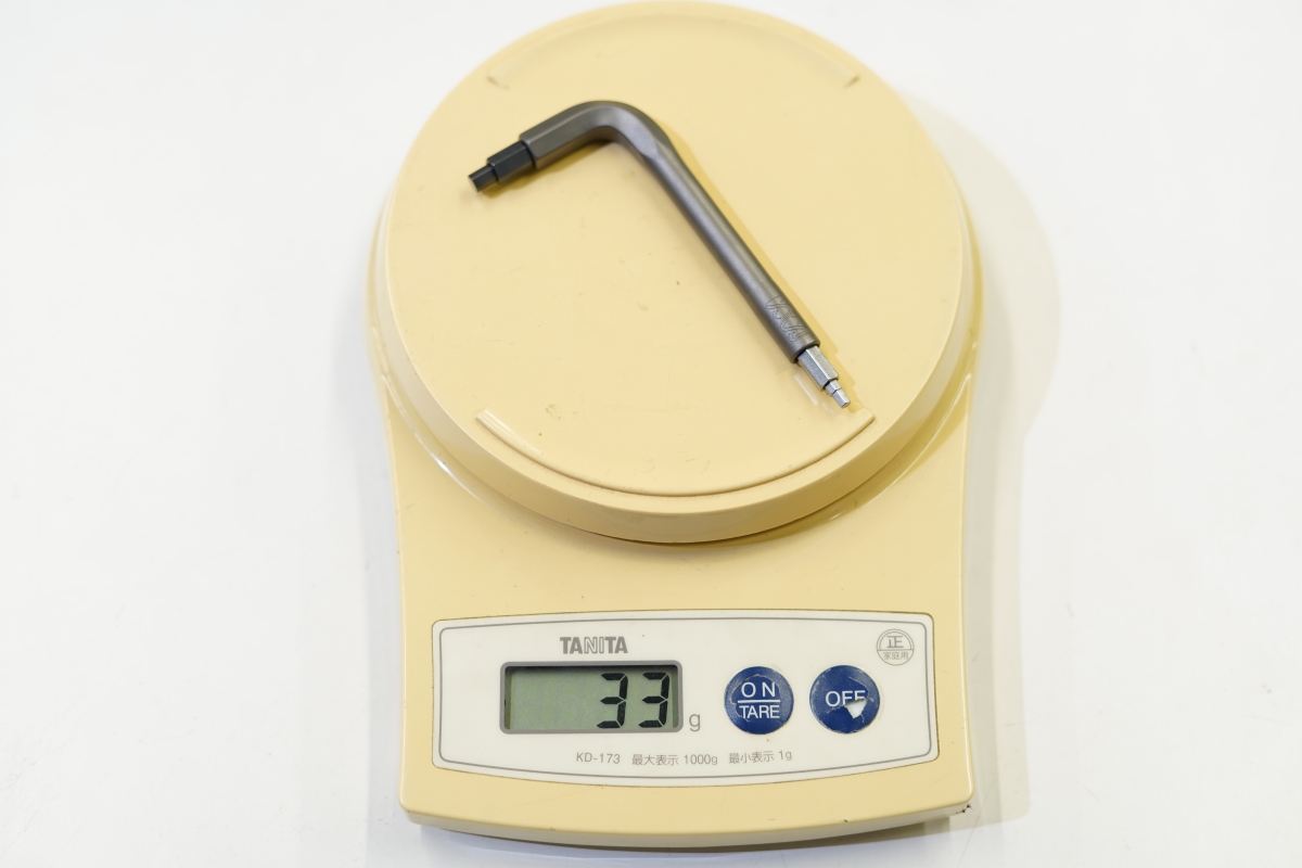 重量は公称通りの33g。これだけの機能を備えたツールとしては世界最軽量クラスですね。持ち運ぶツールを少しでも小さく軽くしたい、だからと言って実用性の低い工具はちょっと…という方に最高のアイテムではないでしょうか。