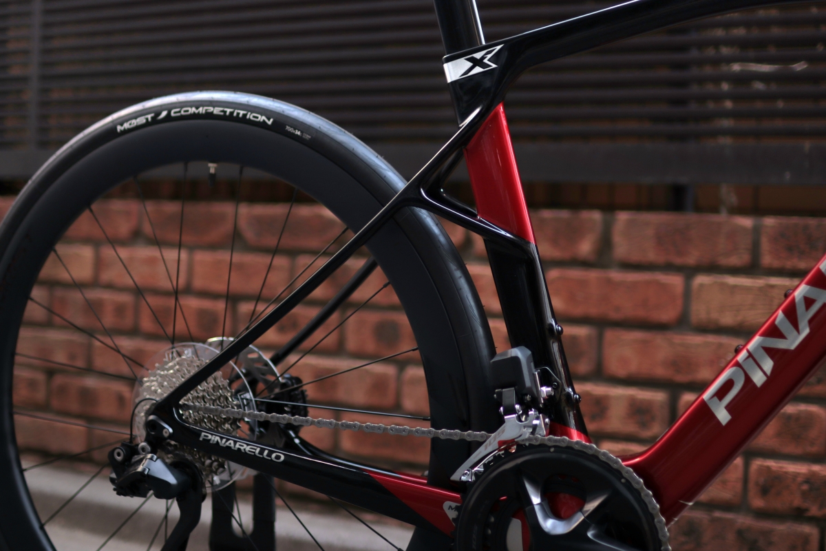 東レのT700カーボンを使用したフレームは、往年のプリンスのようなリア三角形状からDOGMA Xのような細身のシルエットになりました。