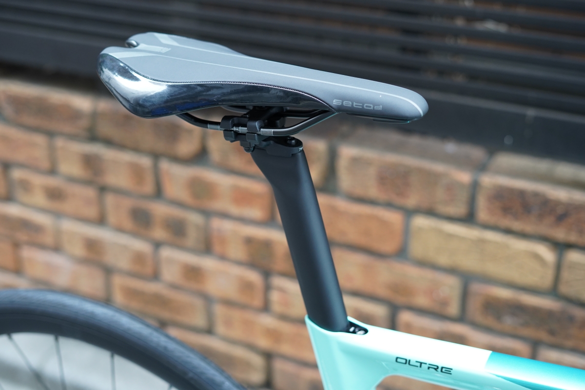 丸形の汎用シートポストを使用するSPRINTに対して、OLTREのシートポストはエアロ形状の専用品となっています。