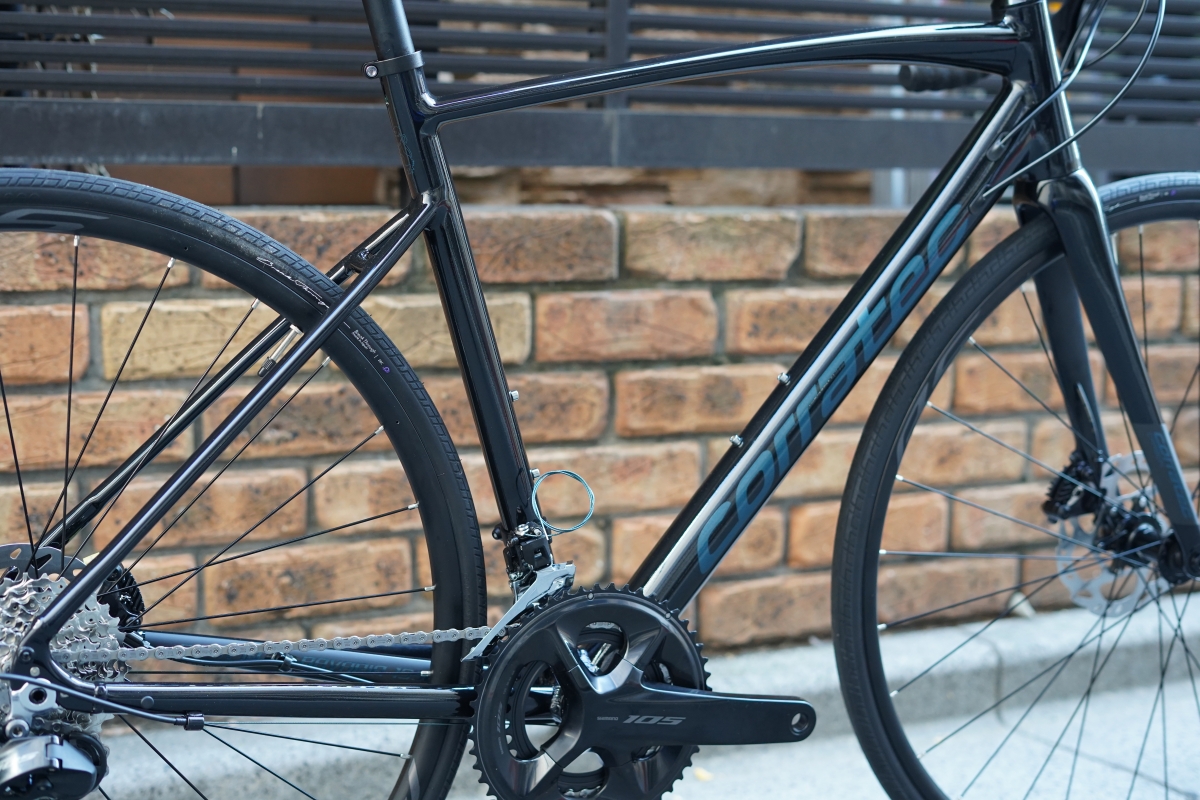 ドイツブランドCORRATECのアルミロードバイク「DOLOMITI DISC」。快適性の高いアルミフレームは初心者でも扱いやすく、通勤通学から週末のロングライド、ロードレースのイベントまで幅広く使える一台。最新の12速105を搭載してこの価格は、他のメーカーではなかなか見かけないコスパの高さ。これから本格的にロードバイクを初めてみたい方、リムブレーキから乗り換えの方にもオススメ!