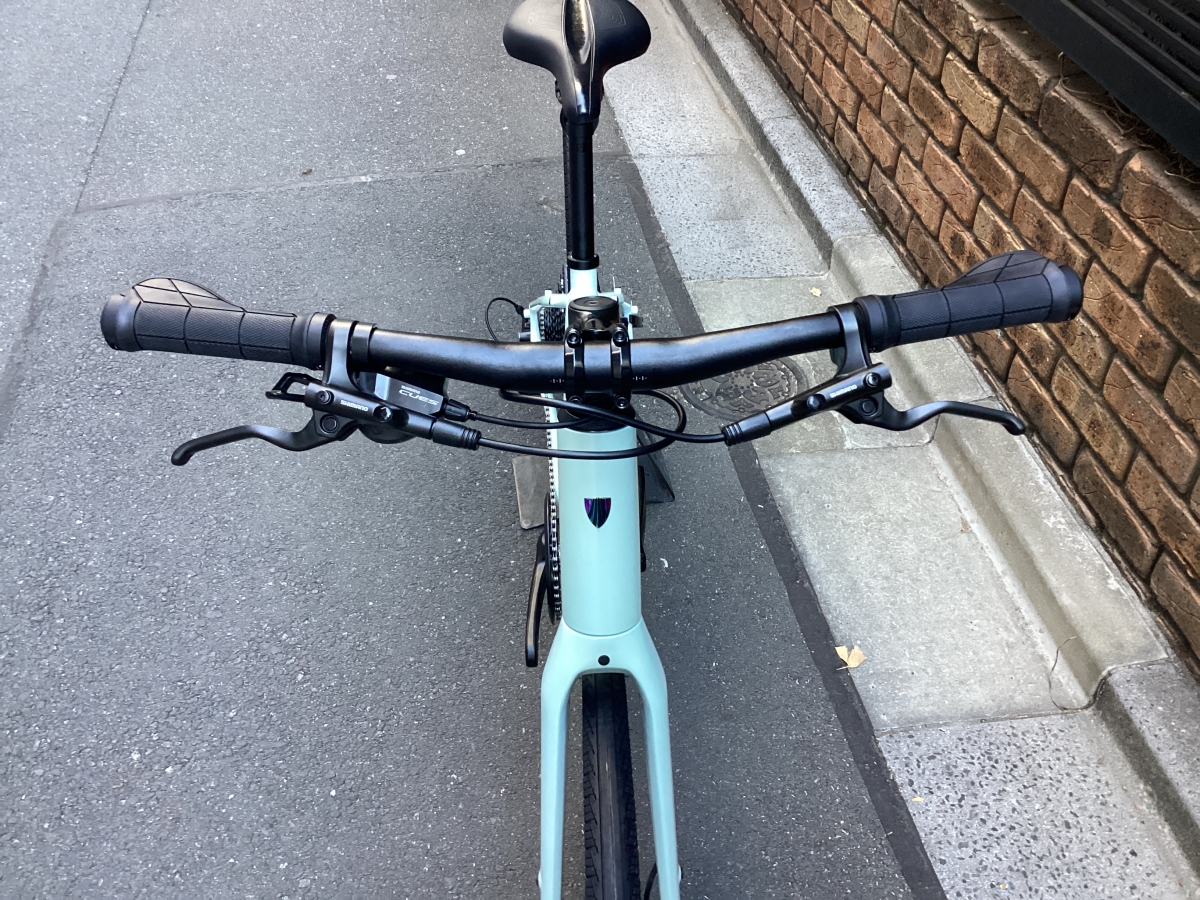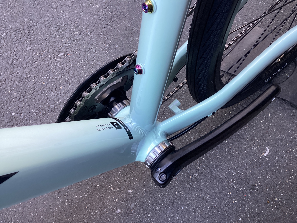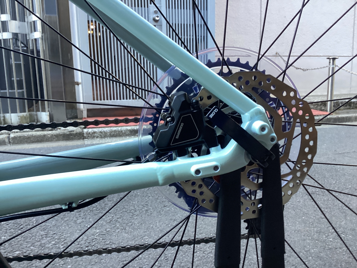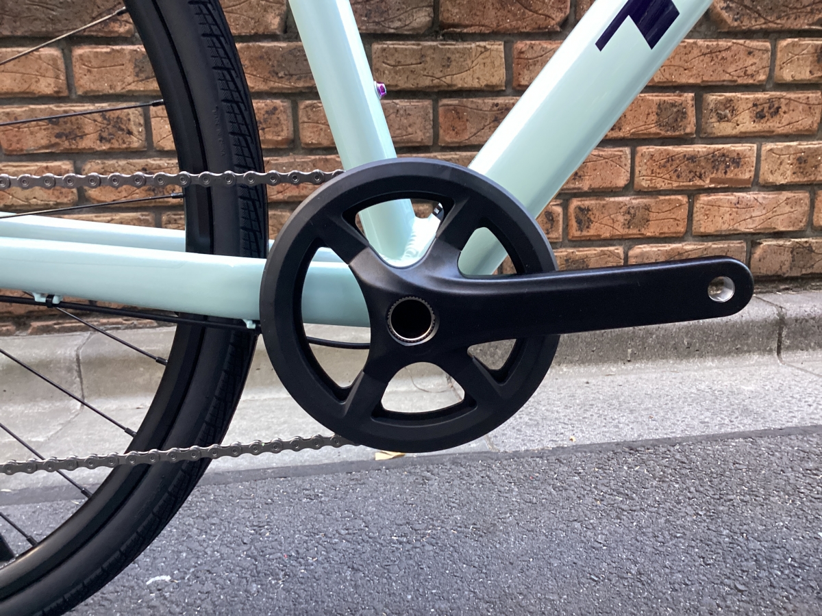 FX3はFX2と比べフレームがグレードアップ。アルミフレームにカーボンフォーク仕様。そして油圧ディスクブレーキはテクトロからシマノ製へ。よりかっちりとしたブレーキの制動力がえられます。変速段数はリア9速(11-46)から10速(11-48)に。フロントチェーンリングは変わらず40T。タイヤも変更なく700×35CボントレガーH2 COMPハイブリットタイヤ。街中での使用を考えられ開発されたモデルです。コーナリング時のグリップ力もありながら高い耐久性を確保。フレームの最大タイヤクリアランスは700x40mm。ギアはシマノCUES U6000。CUESに使用されるスプロケットやチェーンはLINKGLIDE規格になり、従来のパーツに比べ耐久性が大幅に向上しました。