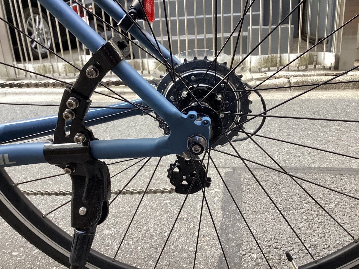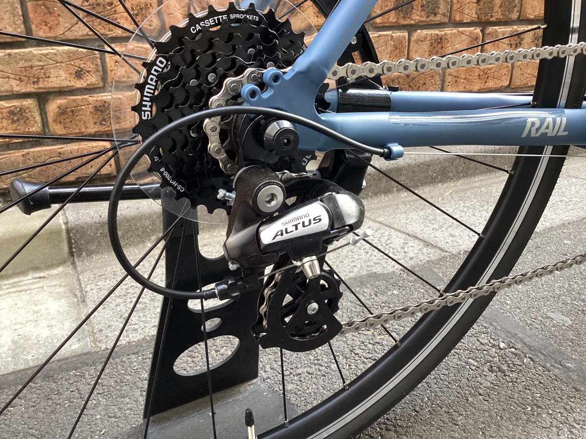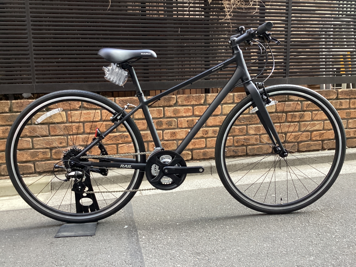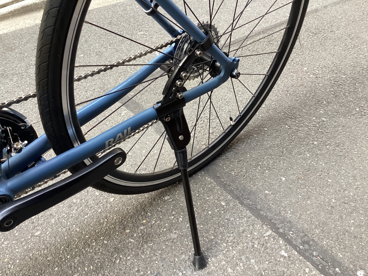 コーダブルームクロスバイクシリーズ「RAIL」。五種類のモデルが展開されています。その中でも「RAIL ST」はスタンダードと言っていいモデル。RAILシリーズ共通の軽量アルミフレーム。フレームの場所によって金属の厚さを換えたこだわりのトリプルバテット構造。溶接個所は手作業で研磨し美しい仕上げのスムースウェルディング加工です。タイヤはバランスのとれた32C。座り心地の良いオリジナルサドル。ホイールの固定は固定力を重視しスキュワーナットタイプ。もちろんキックスタンドも付属。3×8の24段ギア。チェーンリングガードありギアで裾汚れも付きにくくなっています。