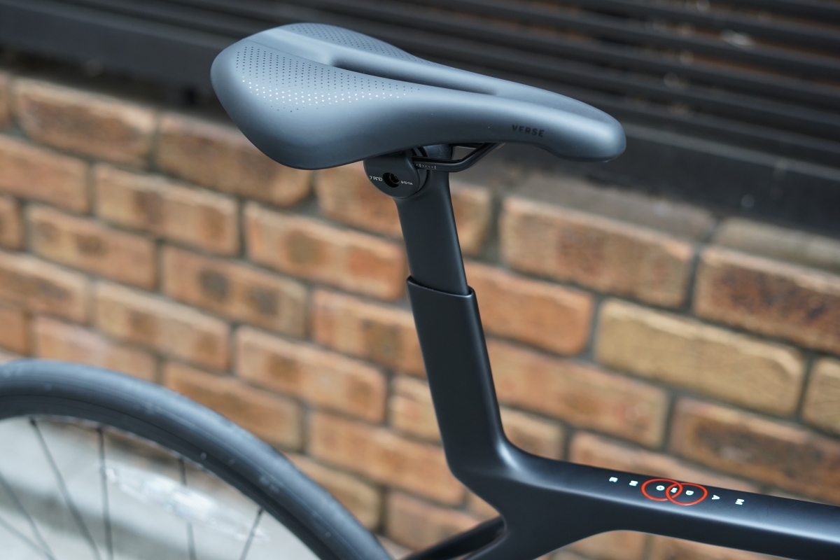 エアロ形状のシートポストを採用。調整できるサドル高に制限があるので適正サイズに関しては是非スタッフまでご相談ください。