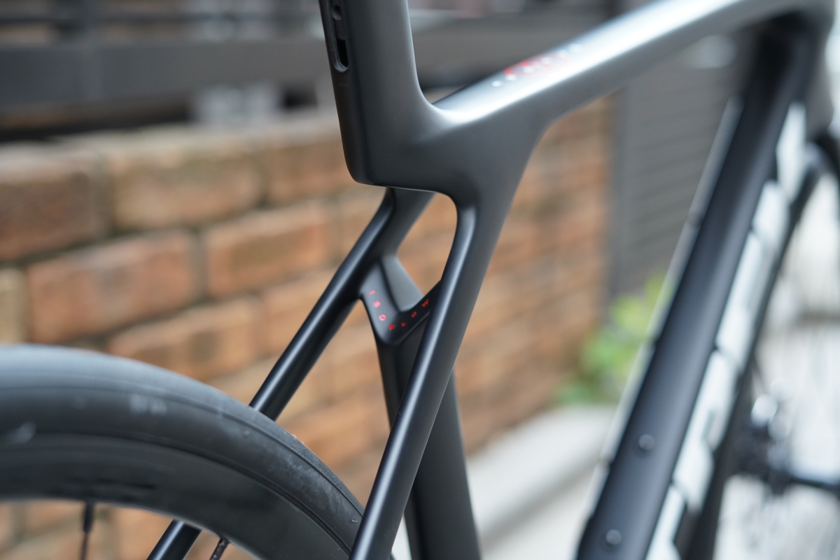 トレックのメインレースバイクとして第8世代目となるフレーム。第7世代と比較してスリムな形状となり大幅に軽量化されていますが、CFD解析を突き詰めた結果、人が乗った状態での空気抵抗には大きな差がないとされています。専用のエアロボトルを使うことで更に空力の向上も狙えます。