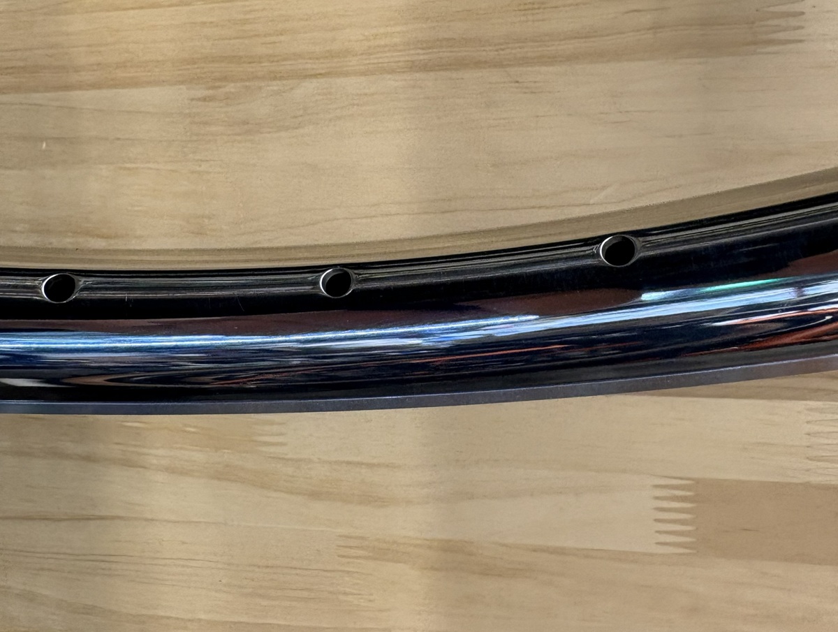 画像では捉えきれない、ピカピカな輝きで美しい仕上がりとなっています。ドレスアップや、消耗リムの交換用としていかがでしょうか?