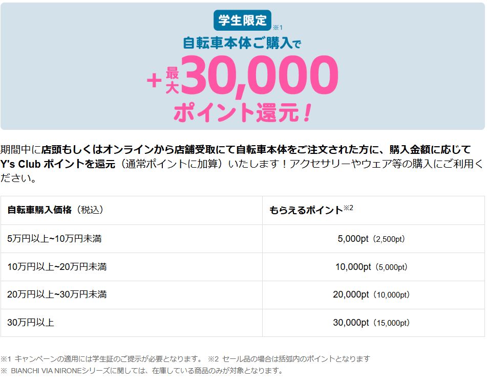 キャンペーン期間中(2026/5/6まで)本記事のモデルを購入&学生証ご提示でワイズロードポイント10,000pt付与いたします!