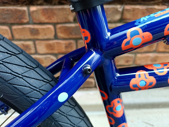 一番目を引くのはフレーム中央、ダウンチューブからシートチューブに伸びる補強パイプ。