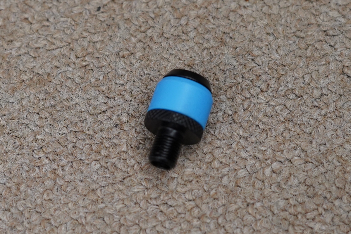 こちらは付属の樹脂製バルブキャップ。軽く押し込むだけでカチっと固定され、引っ張るだけですぐ取れるので、脱着に掛かる時間も最小限に抑えられています。付けなくてもエアが抜けたりはしませんが、汚れや水の侵入を考えると付けておきたい部品です。