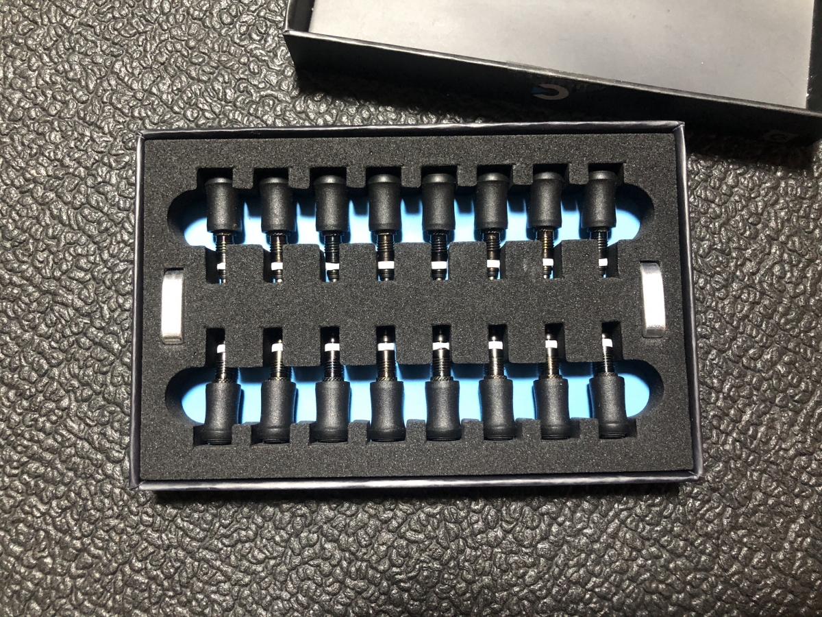 16個のバルブコアそれぞれにキャップと、取り付け用工具が2個付属。通常は2個入りで¥1,496ですから、セットで買うことで¥2,000くらいの節約になります。初めて目にした時は一体どんな人が買うんだろう?と思いましたが、まさか自分で買うことになるとは…