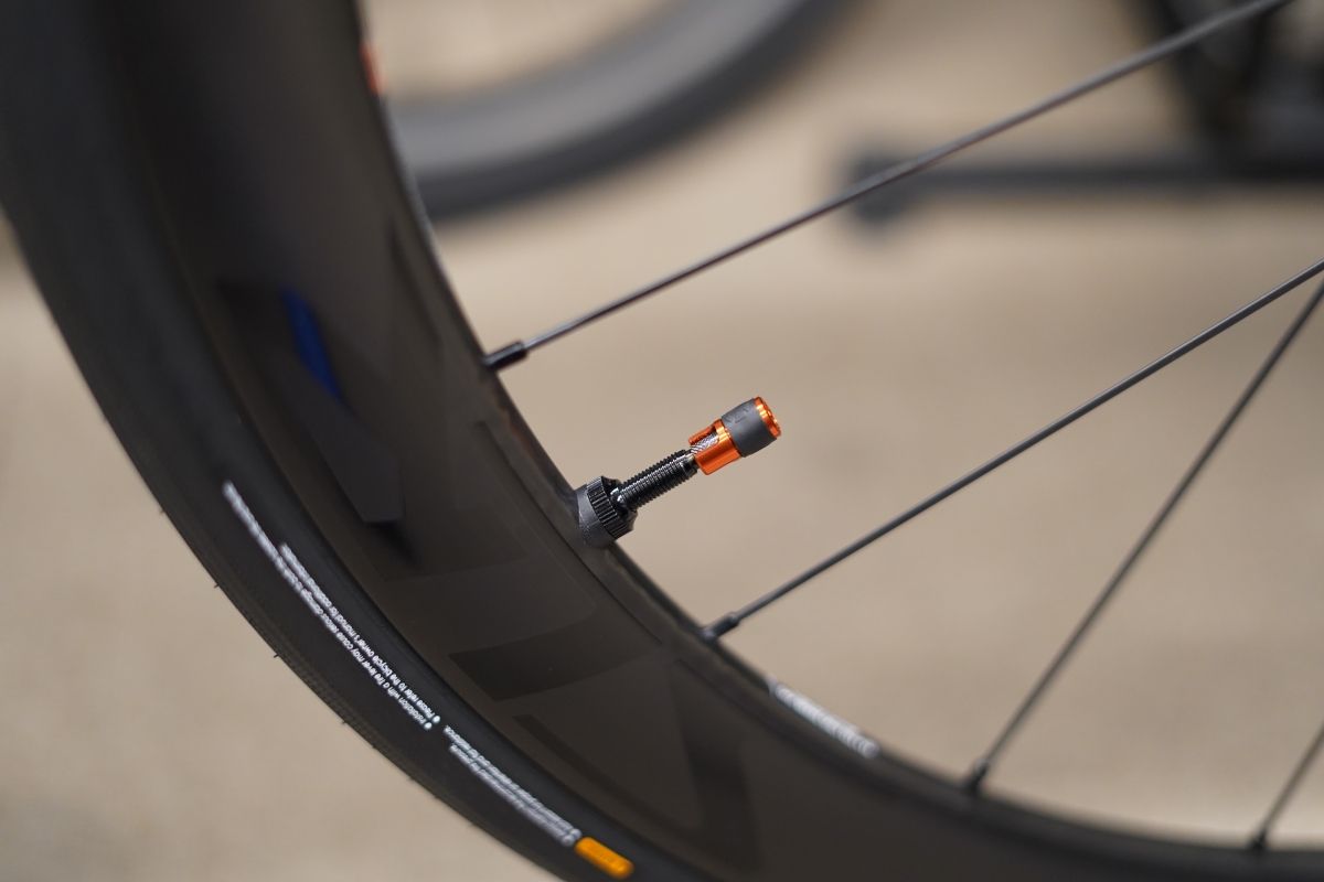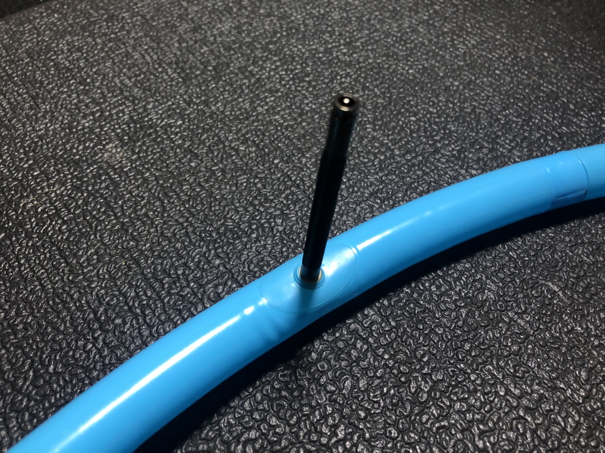 ちなみに62mmハイトのホイールにバルブ長65mmのチューブを使用したところ、ピッタリとバルブコア部分だけ露出する状態になりました。