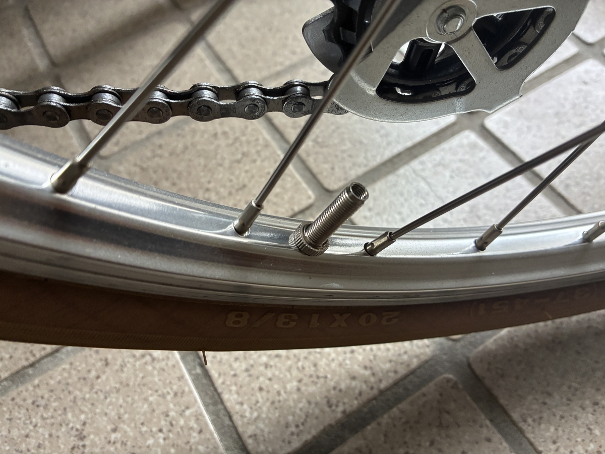 こんな状態でもCLIKバルブなら問題なく空気を入れることができました。バルブの突き出し量を最小限に抑えたい場合にも有効ですね。