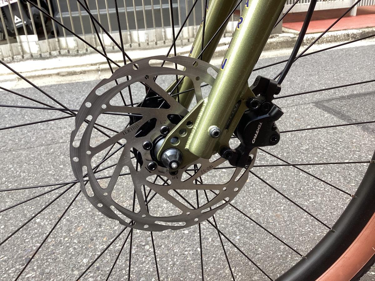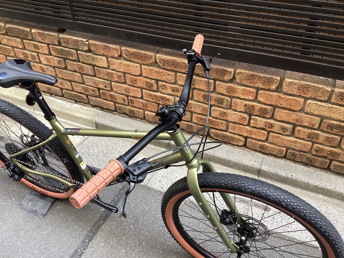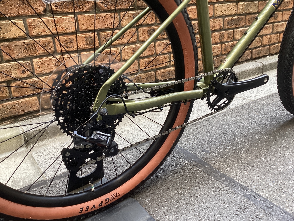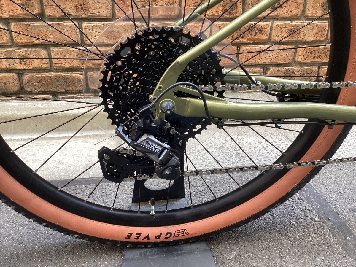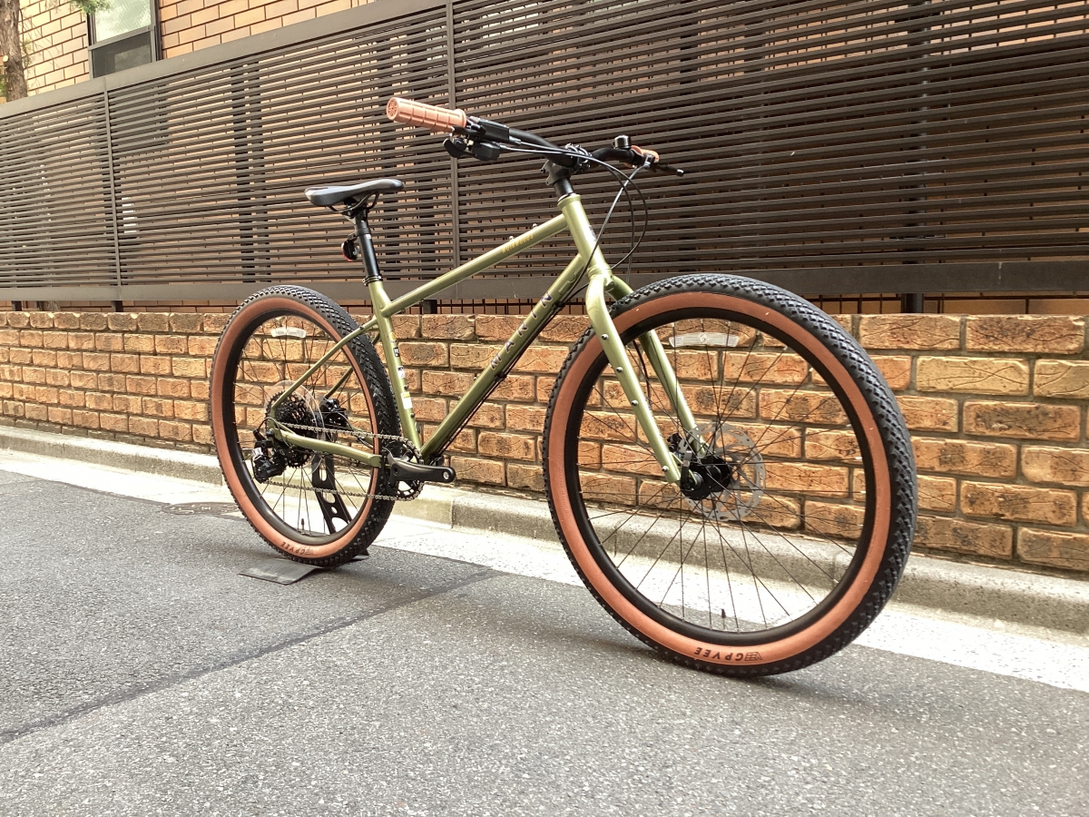 往年の名作を現代にアレンジ!リジットフォークにクロモリフレーム、タイヤは27.5×2.35インチ。太めのタイヤはどんなフィールドにも対応します。ブレーキは油圧ディスクブレーキ。フロントは180mm、リアは160mmローターを搭載。山のなかでもしっかりとブレーキング操作が可能。ギアはマイクロシフトADVENT X 10速仕様。スピードと登りでの軽さ両方を兼ね備えた11-51Tのスプロケットが搭載されています。街の中から山の中まで様々な用途で遊べるバイクです。