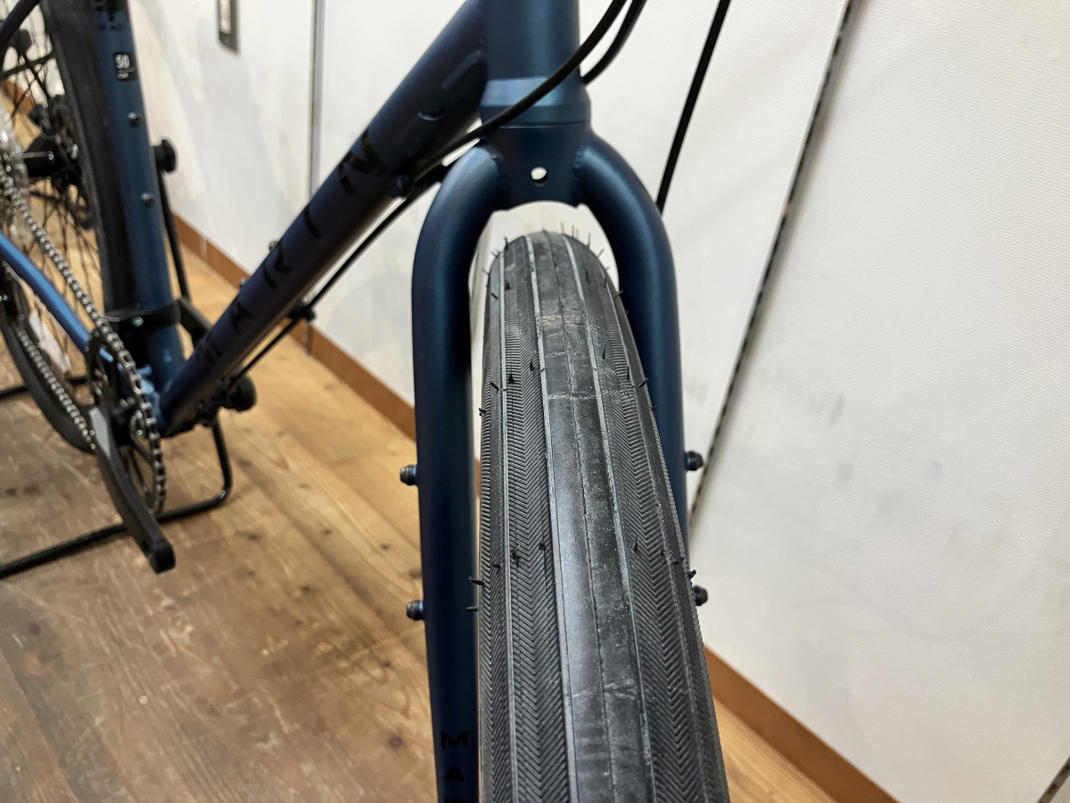 クロモリフレームにクロモリフォーク。650B×47の太めのタイヤで乗り心地の良いバイクです。通常のNICASIO SEをMARIN JAPANがカスタマイズしたモデルでよりリラックスして乗れるプロムナードハンドルに変更されています。