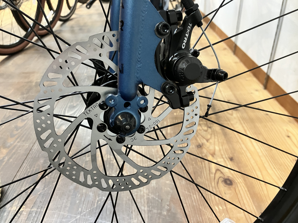 ブレーキは機械式のディスクブレーキで制動力もVブレーキに比べ高く、安心です。