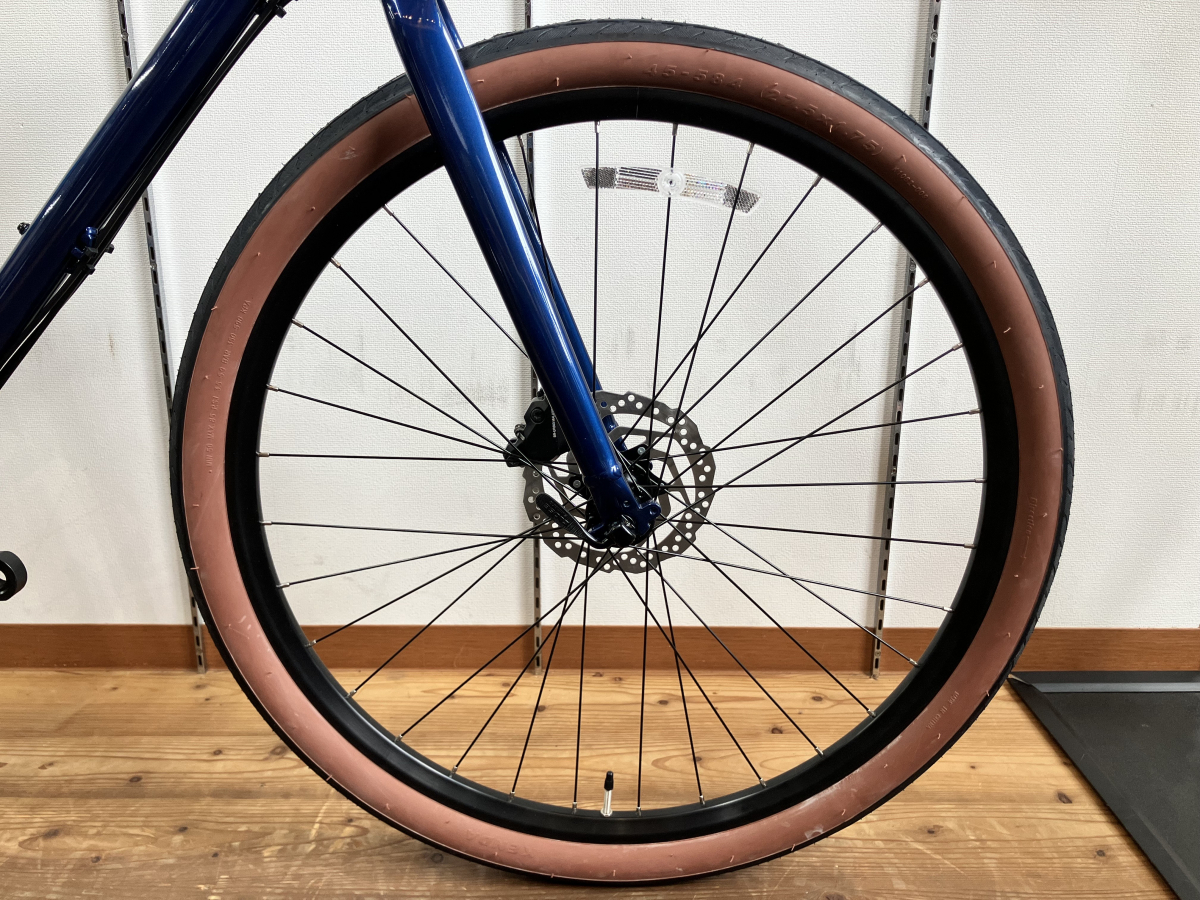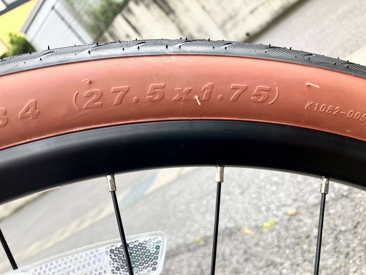 27.5×1.75のタイヤを履いており、ホイールは通常のクロスバイクの物よりも一回り小さいですが、タイヤが太く、エアボリュームがあるため、700×28Cと変わらない外径をしています。なので見た目以上に軽やかに走ってくれます。なので買い物などの普段使いやサイクリングなどでも活躍してくれます。