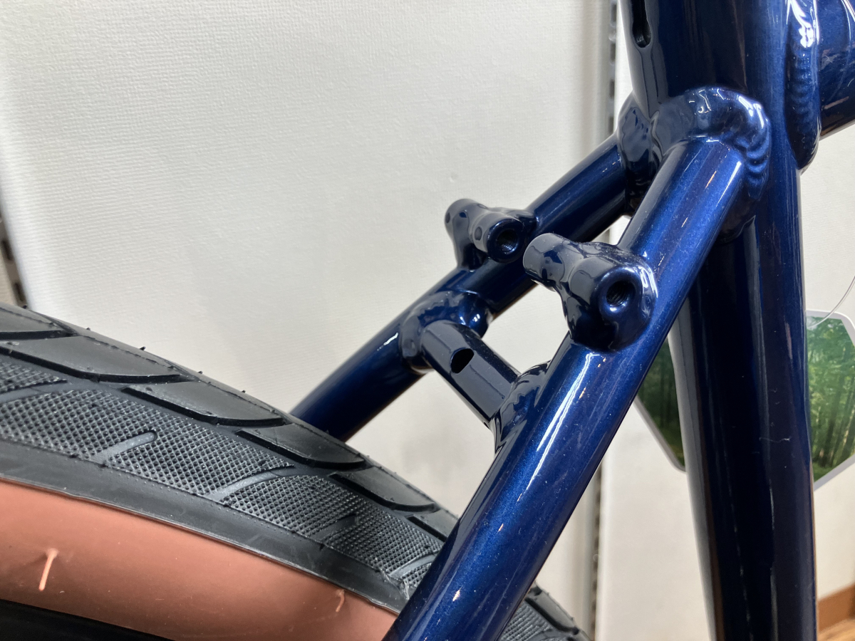 シートステーやリアエンド、フロントエンドなど随所にダボ穴があるので、泥除けやキャリアなどを取り付けることが出来ます。