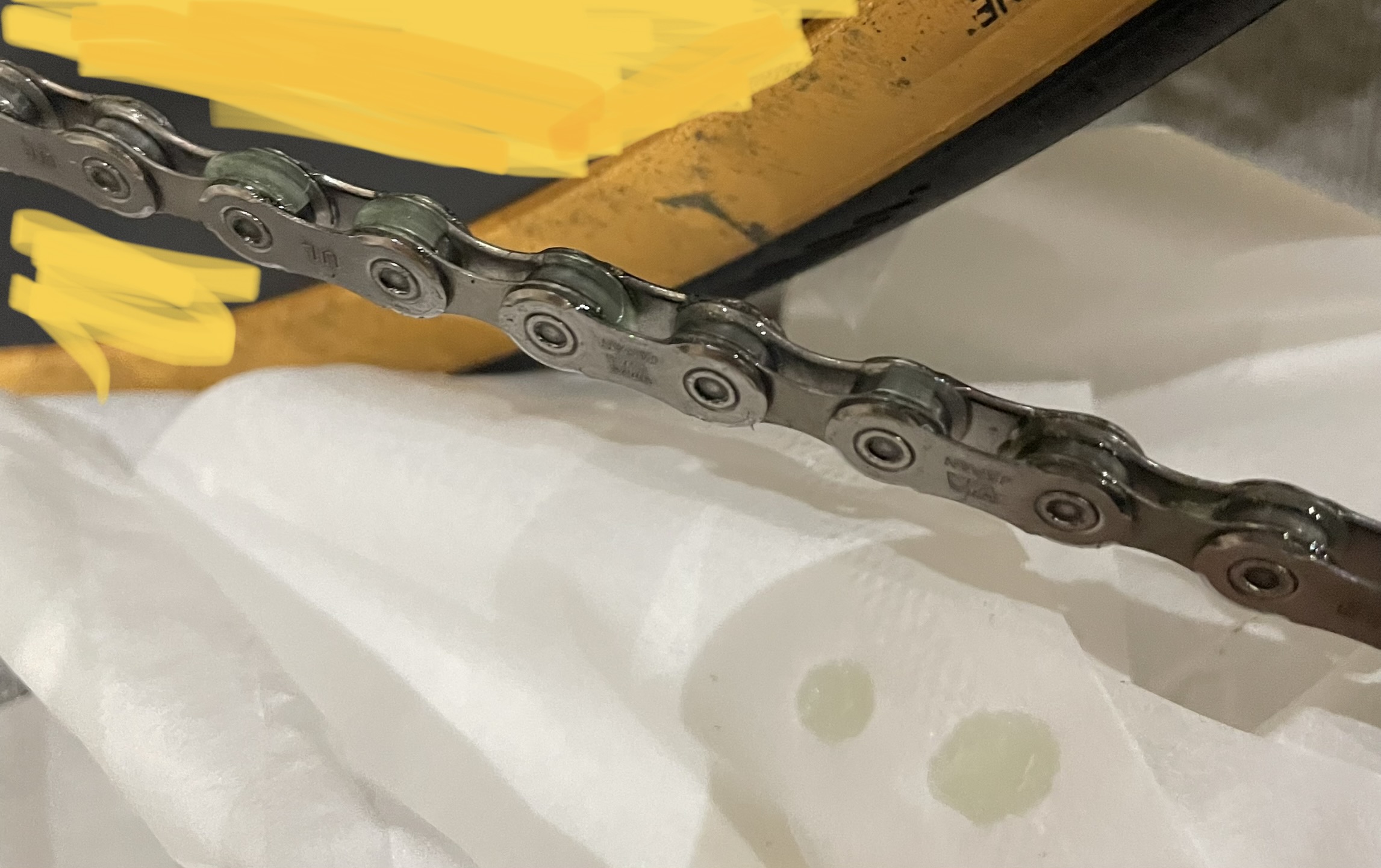 チェーンルブの付け方はいろいろありますが、私のチェーンルブの付け方は、リング一個一個にルブをちょんちょんしてつけます。
