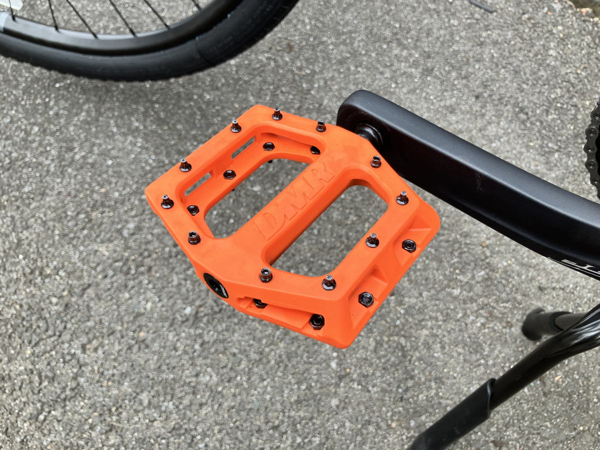 ペダルは遊び心を加えたくて樹脂製のカラフルなやつにしたいと考えていました。