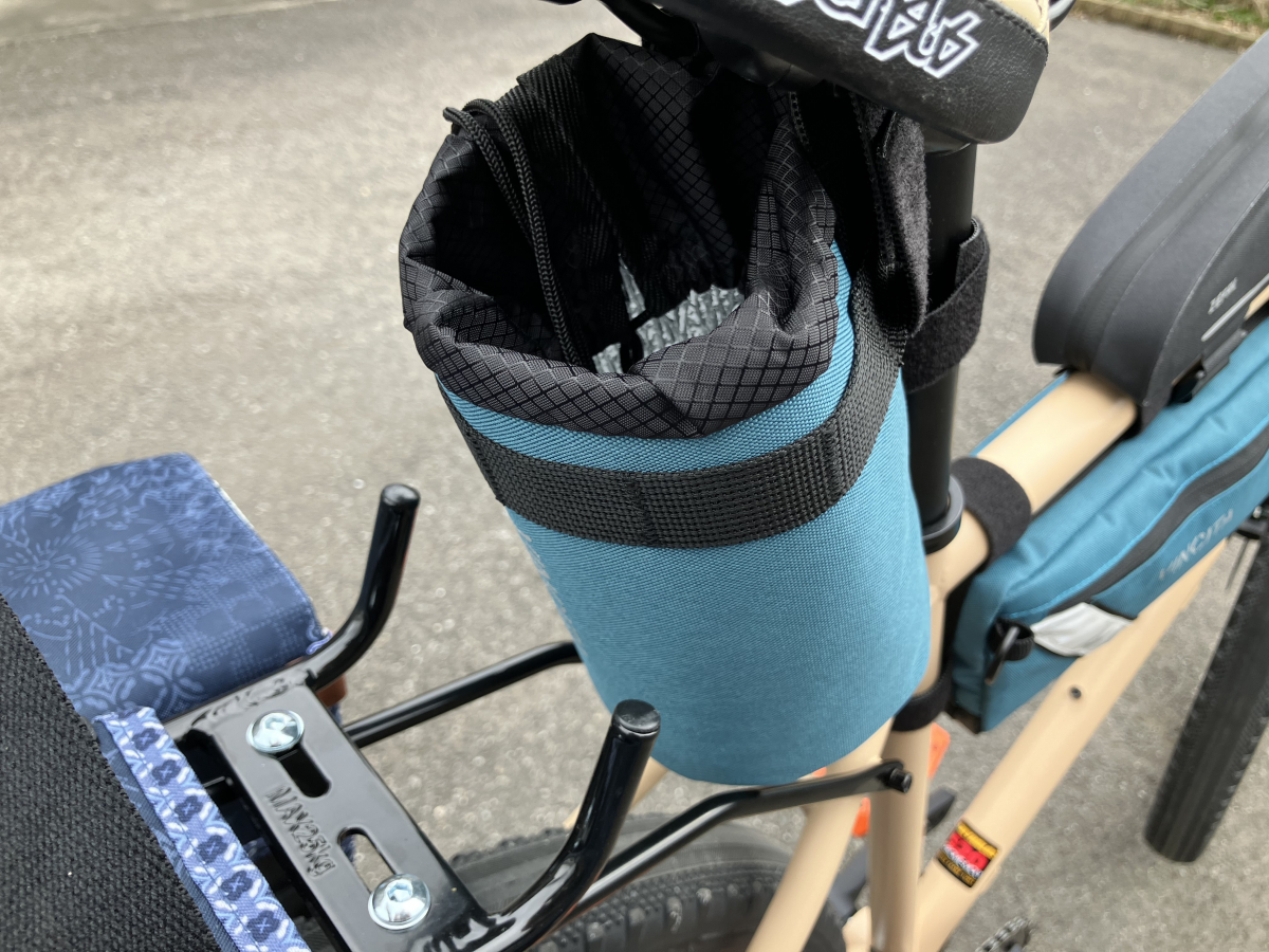 こちらもフレームバッグと同じメーカーの同じシリーズのもので揃えました。色味が非常によく、明るすぎない青色でフレームのカラーともマッチすると予想してこちらのシリーズにしました。
