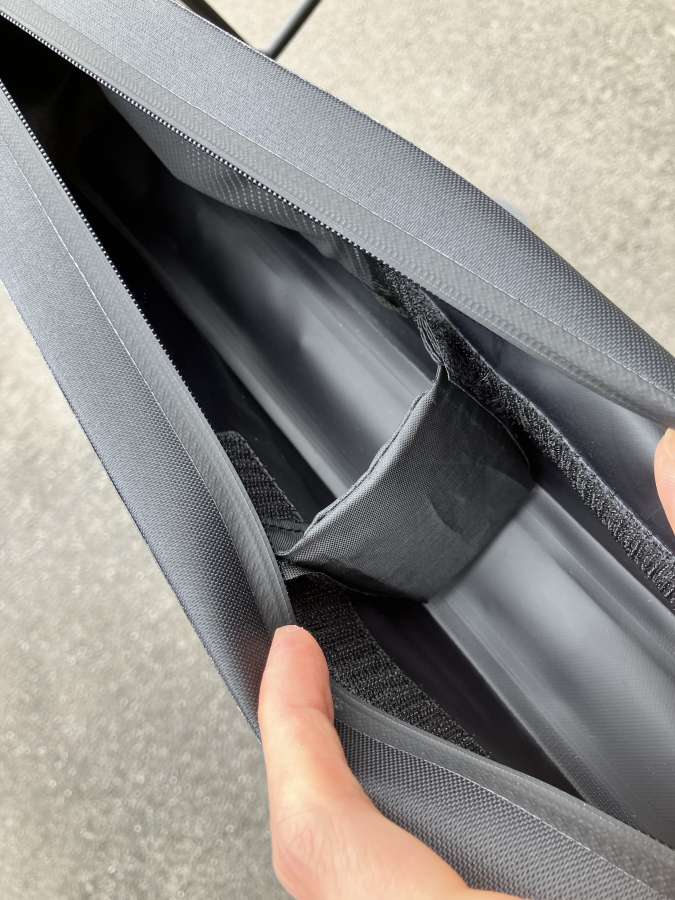 トップチューブバッグはSNSで見かけて是非付けたいと思ったZEFALのZ ADVENTURE T3という非常に長いものにしました。容量が2.2Lもあり、見た目のインパクトも凄いです。中には仕切りが付いているのも嬉しいポイントです。