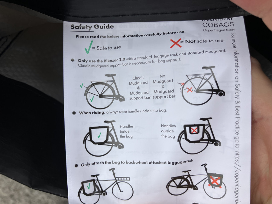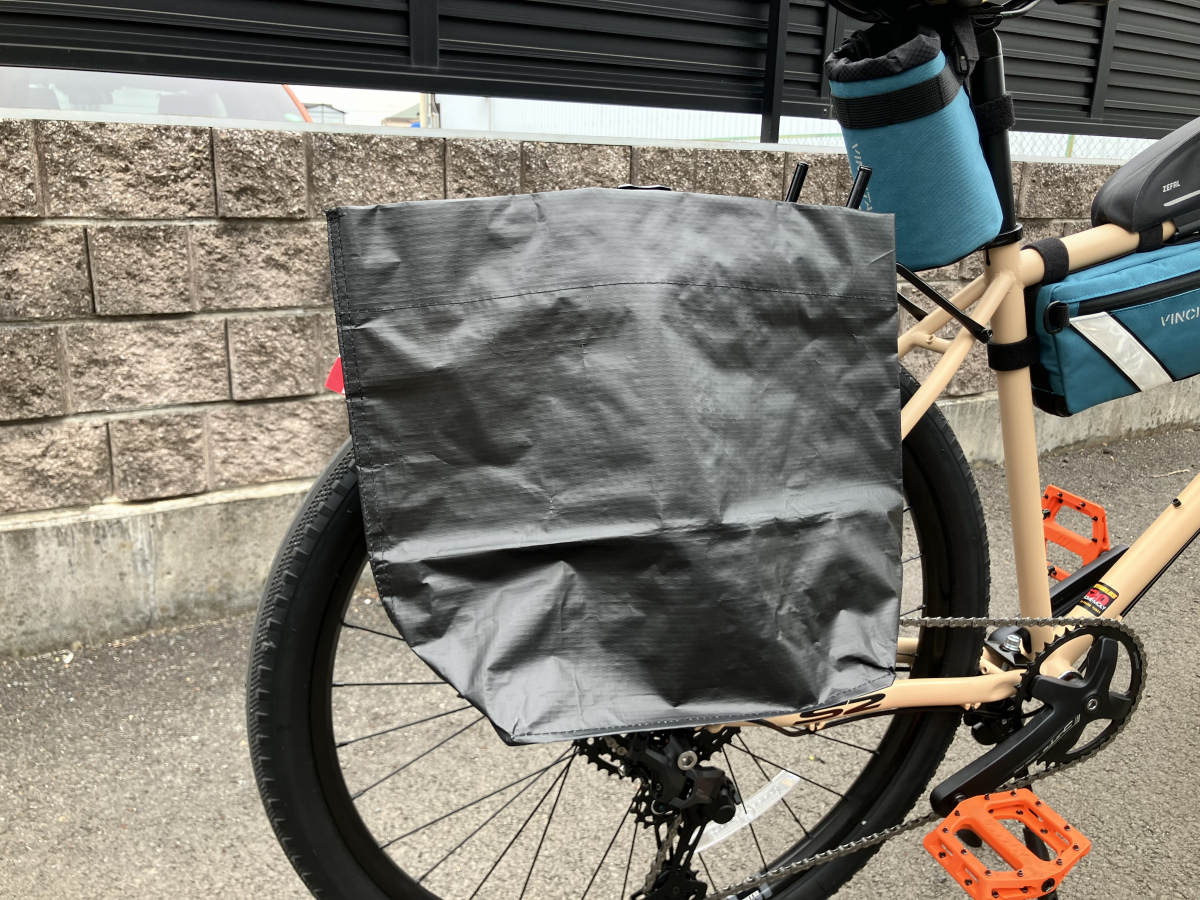 実はもう一つパニアバッグを買ったのですが、それがこちらのBIKE ZACK 2.0です。これはどちらかというとリアキャリアに取付の出来るエコバッグといったもので、軽量で某コーヒーと輸入食品のお店のエコバッグのような材質のものです。ちょっとした買い物の時にいいかなと思って買ったのですが、説明書を読むと泥除けが付いていない場合は使わないでと書いてあったので、断念しました。