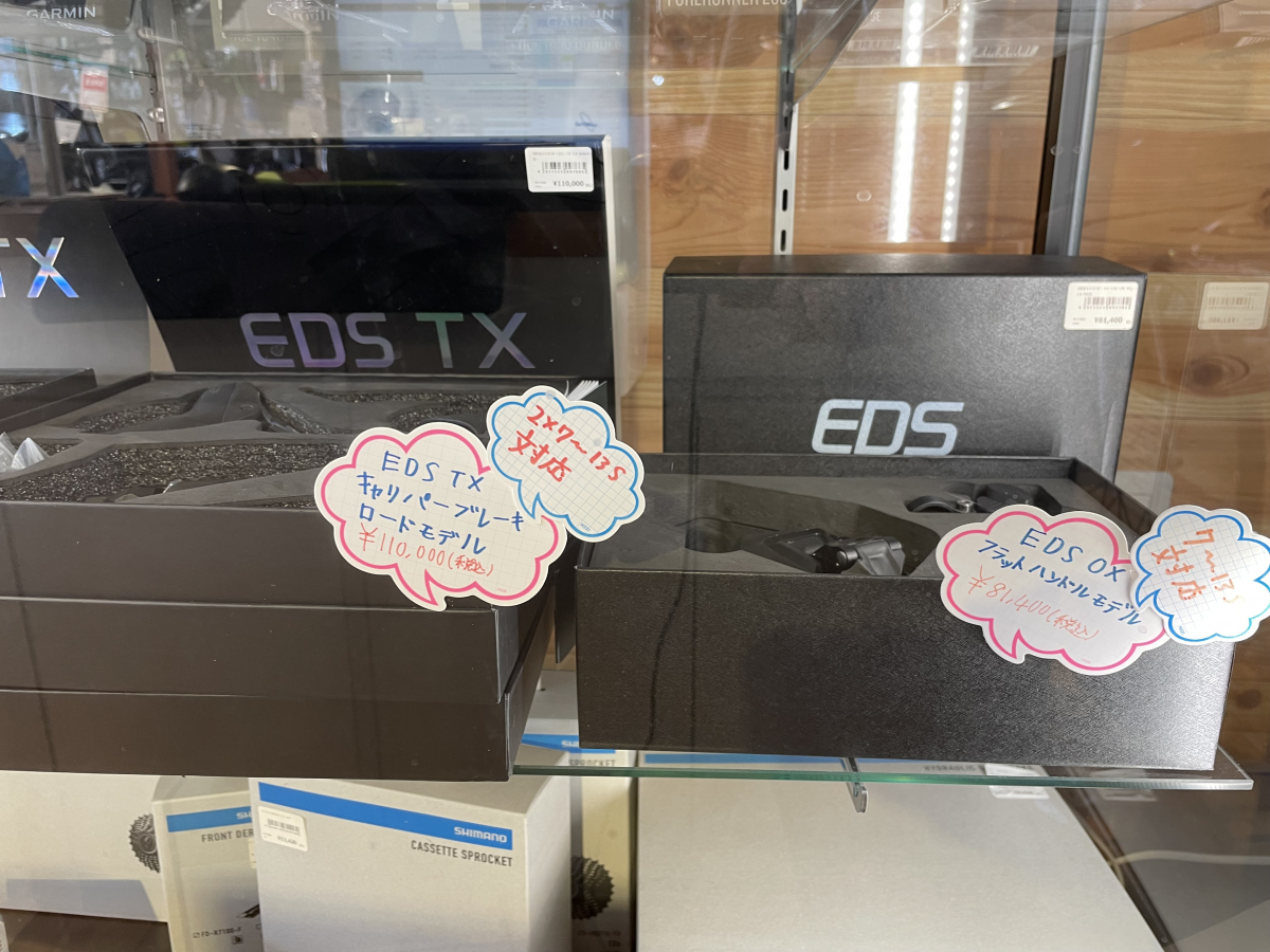 また、当店には試乗車があるので実際に乗ってみることも出来ます。しかも油圧式とリムブレーキモデルのEDSコンポセットが置いてありますのでその場で購入することができます。