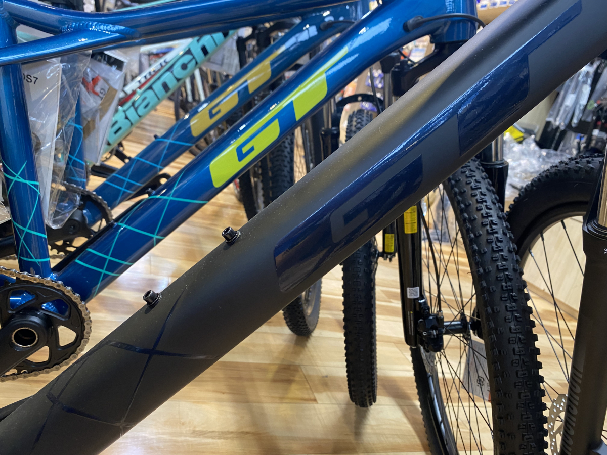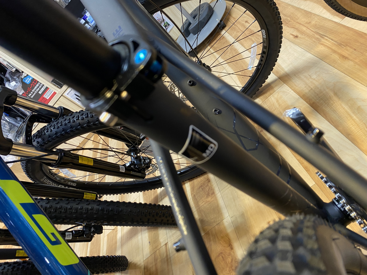 GTと言えばトリプルトライアングルフレームが目印。以前はシートステーがトップチューブとシートチューブの2か所で溶接する事で剛性を上げると言われていましたが。最近は形状はそのままにシートチューブの溶接をやめてしなやかさ、衝撃吸収性の向上をはかっているみたいです。