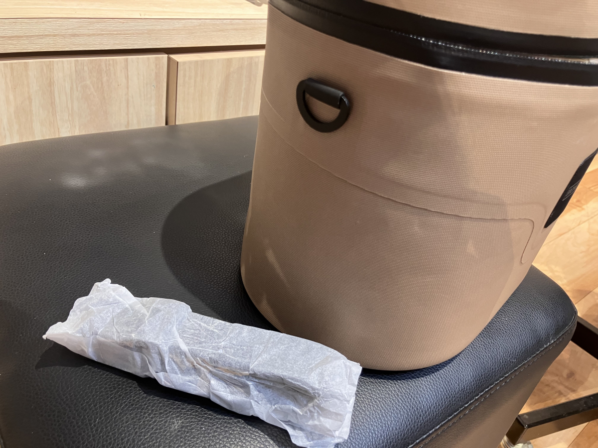 こちらはポーチと同じ素材を使ったボトルホルダーです。