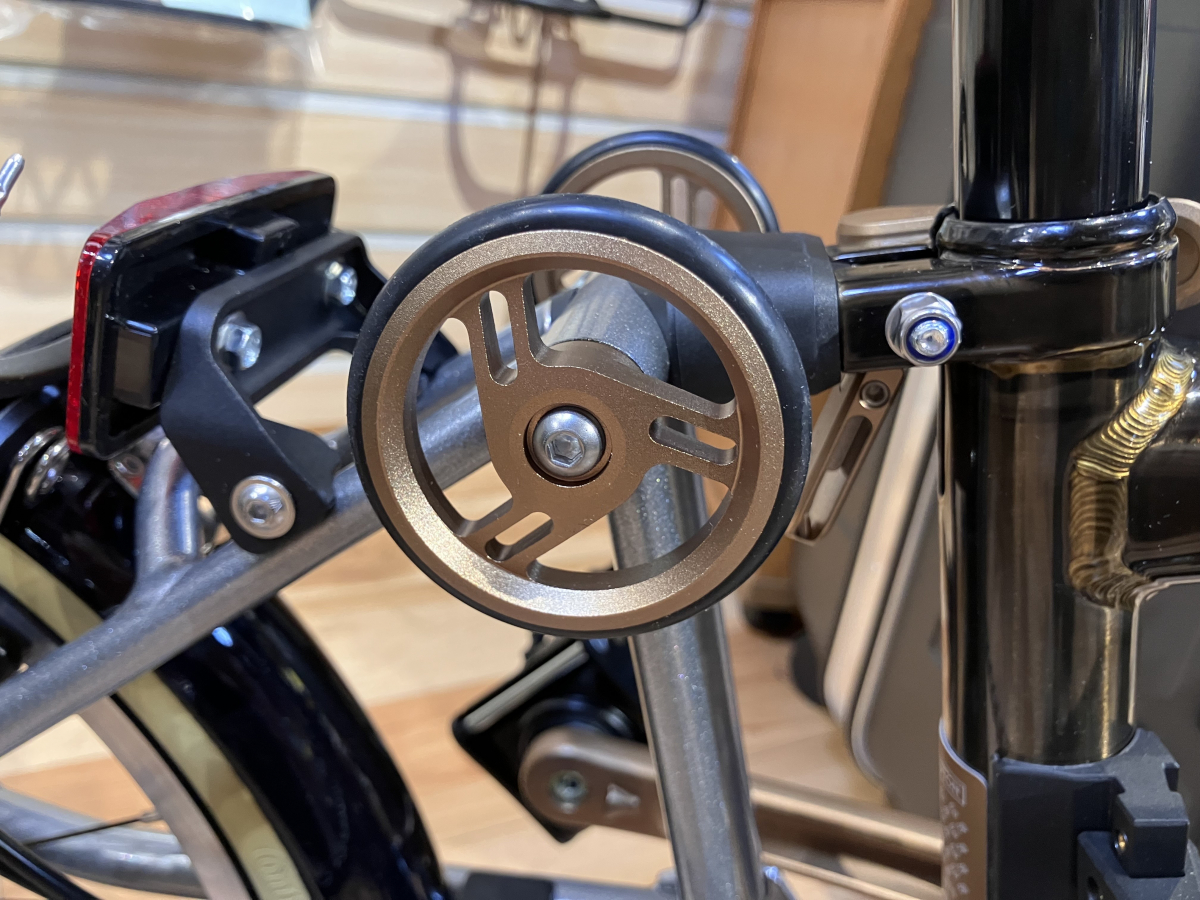 あまりにかっこよいので他のカラーのBROMPTONに合わせたら……なんて想像が膨らんでしまいます。