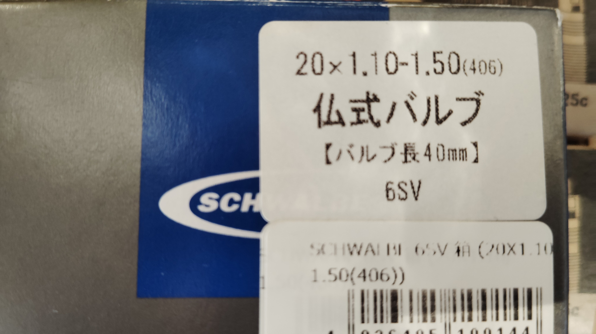 自転車屋のチューブコーナーを見ると、様々なサイズのチューブが並んでいます。