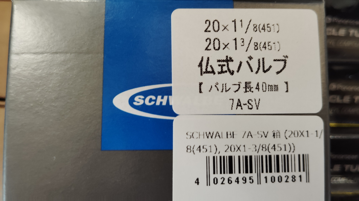 大きめの20インチはETRTO規格では451、小さめの20インチは406という数字が振られています。タイヤの側面には