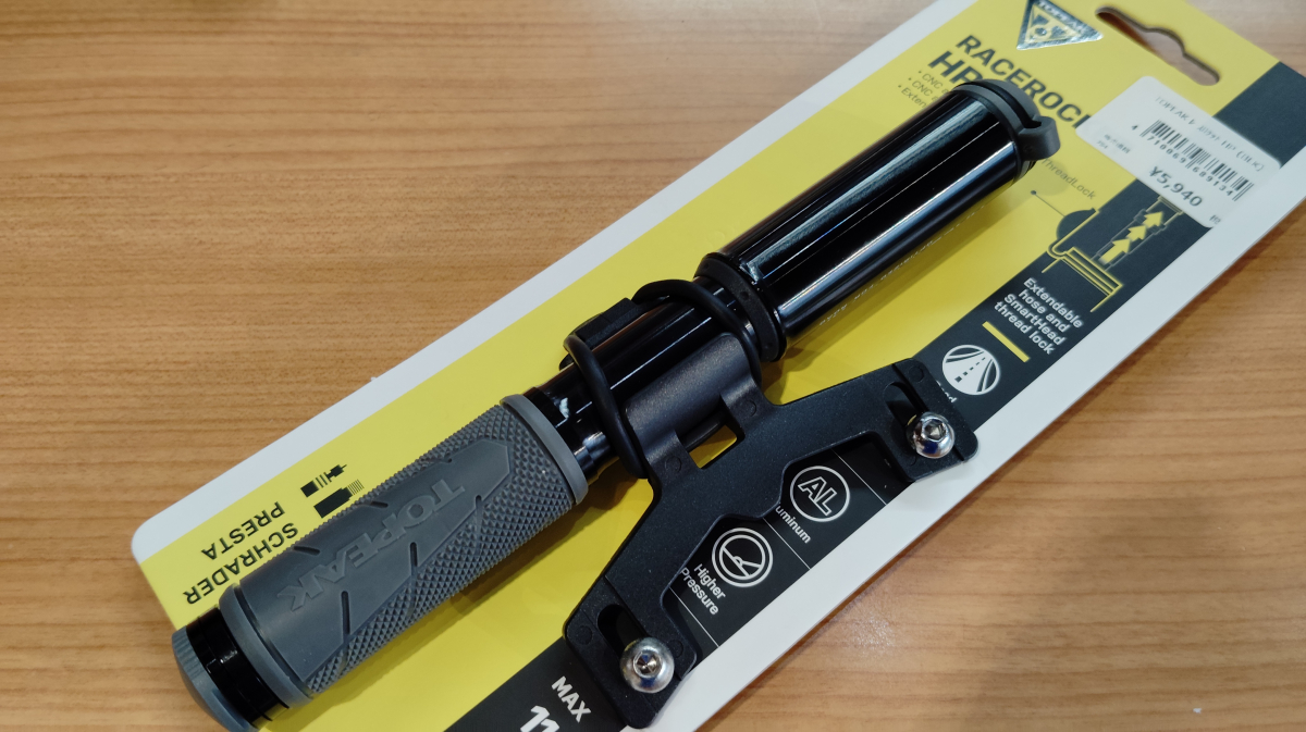 私はパナレーサーの折り畳みフロアポンプというものを買いました。専用のバッグを使って忍者刀のように背負って走ったこともあります。