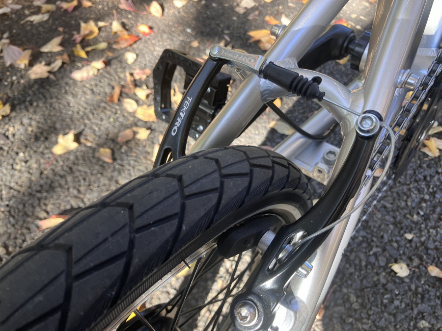 また、普段16インチの折り畳みに乗っているので乗りなれているということもあるかもしれませんが、ハンドルがふらついて不安ということもなく走ることが出来ました。16×1.5という少し太めのタイヤということも安定性に寄与していると思います。