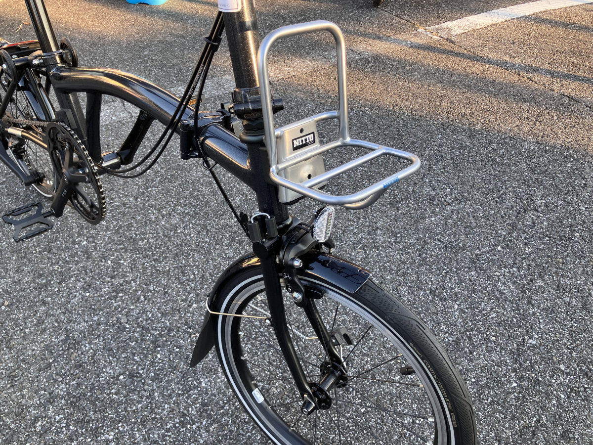 BROMPTONのフロントキャリアブロックに取り付けて使える小さめなフロントキャリアです。