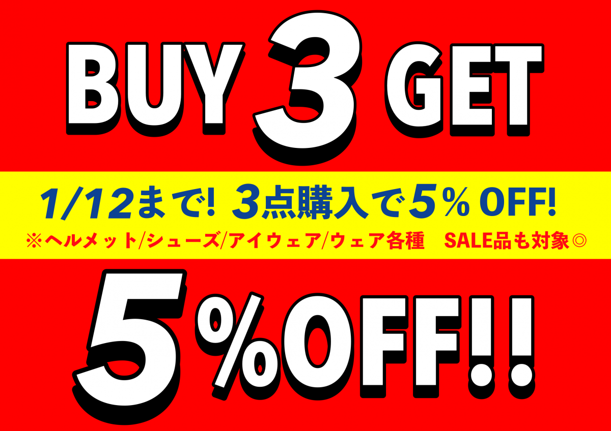 1/12まででしたらセールアイテムでも3点同時購入いただくとセール価格からさらに5%OFFに!