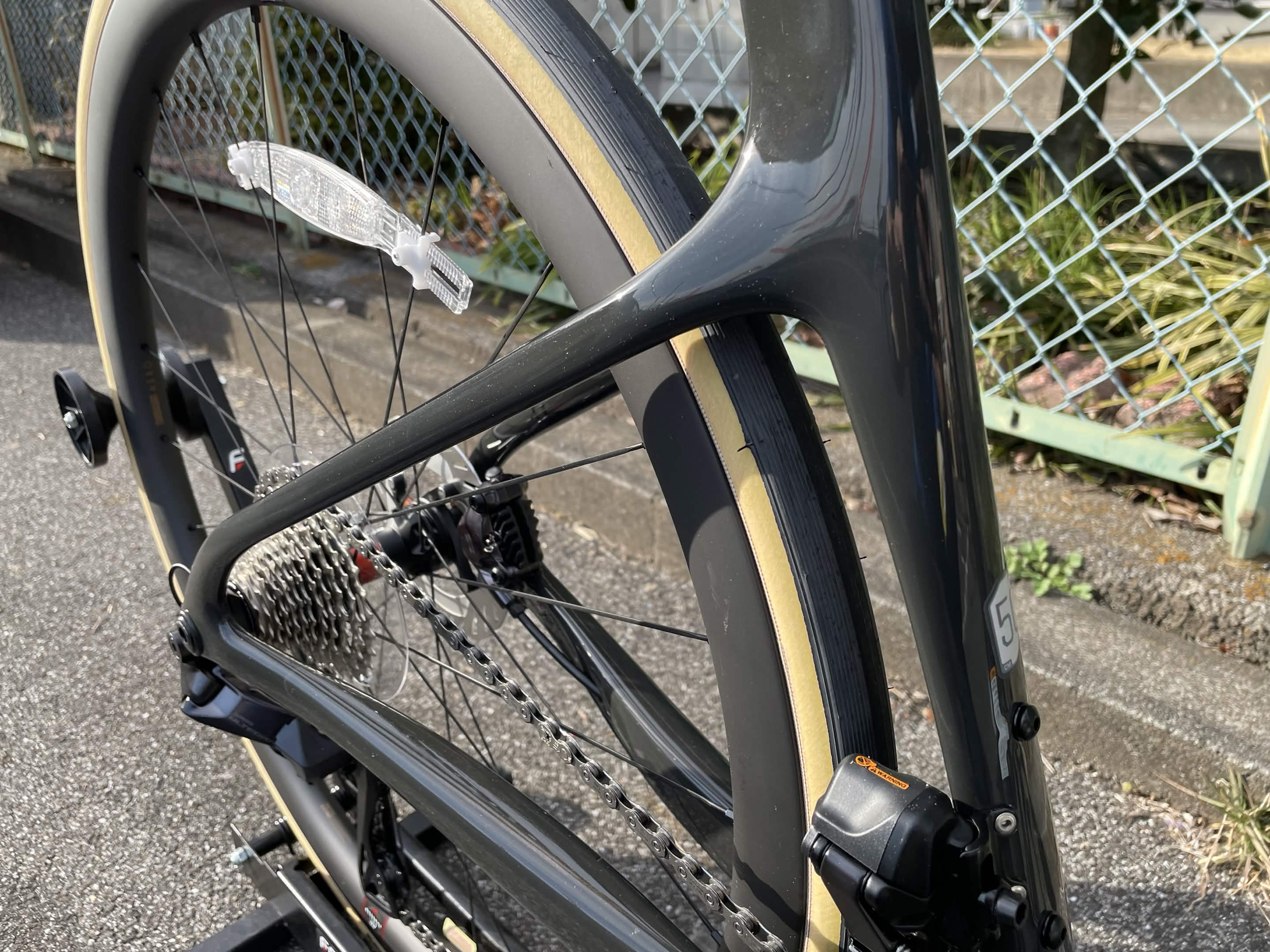 フルペイント仕様の56cmフレームで約910g、フォークは約430gと、ディスクブレーキ対応モデルとしてはトップクラスの軽さを誇ります。