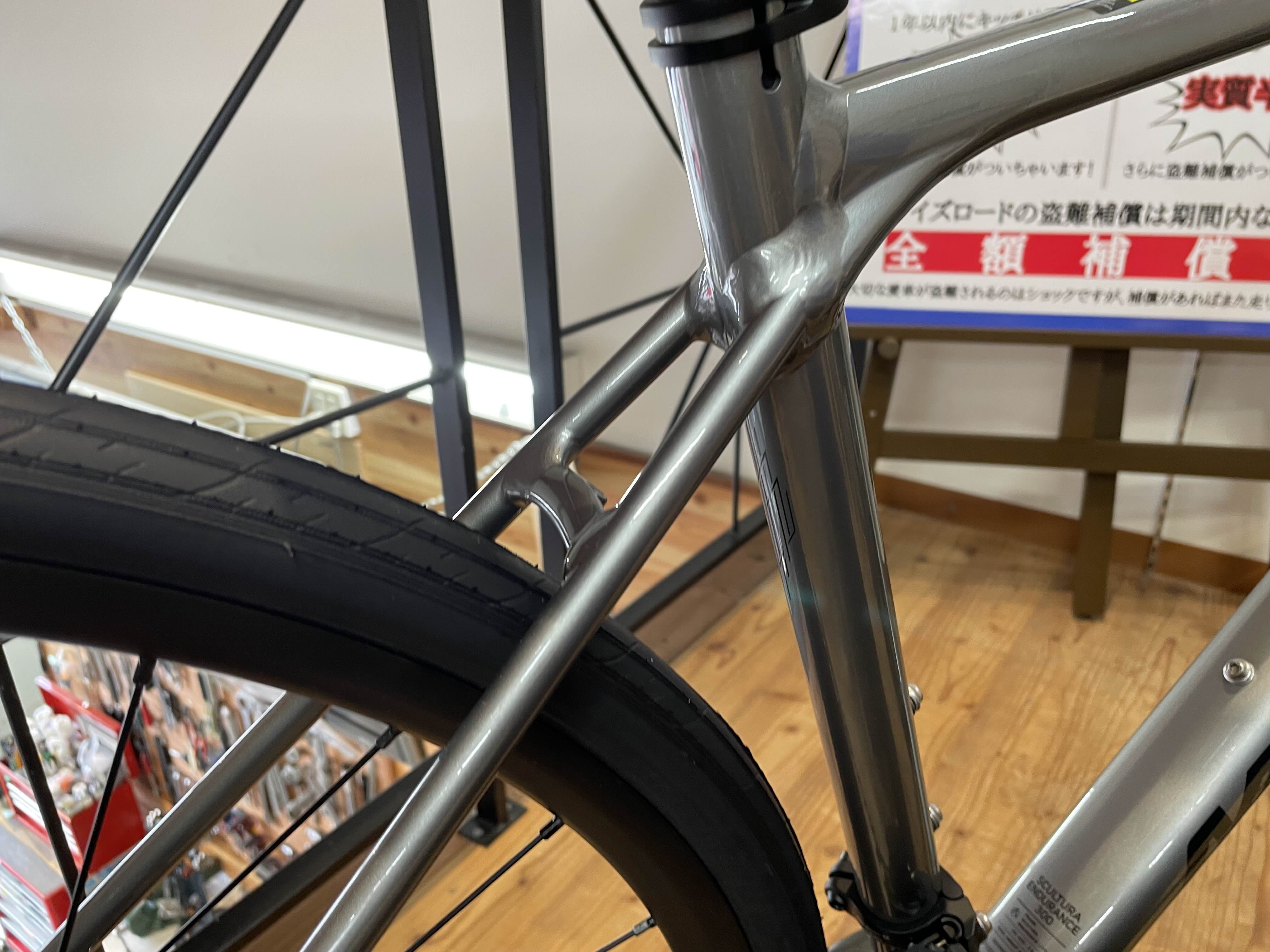 また、タイヤクリアランスが広く設計されており、標準装備の32Cタイヤに加え、最大35Cまで対応可能です。これにより、荒れたアスファルトや石畳、軽いグラベル路面にも対応でき、走行シーンの幅が大きく広がります。