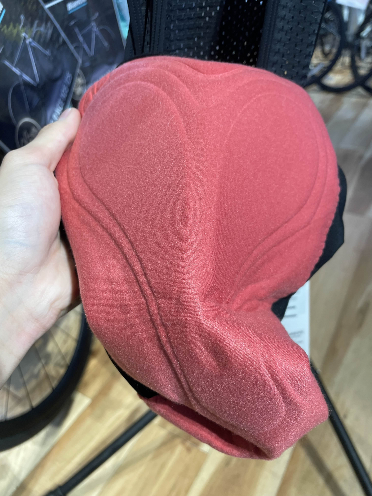 パッドには3層構造の「3D-アール」を採用し、適度なクッション性で幅広いライドシーンに対応。裾にはラッセルテープを使用し、ズレ上がりを防ぎつつ快適なフィット感を実現しています。