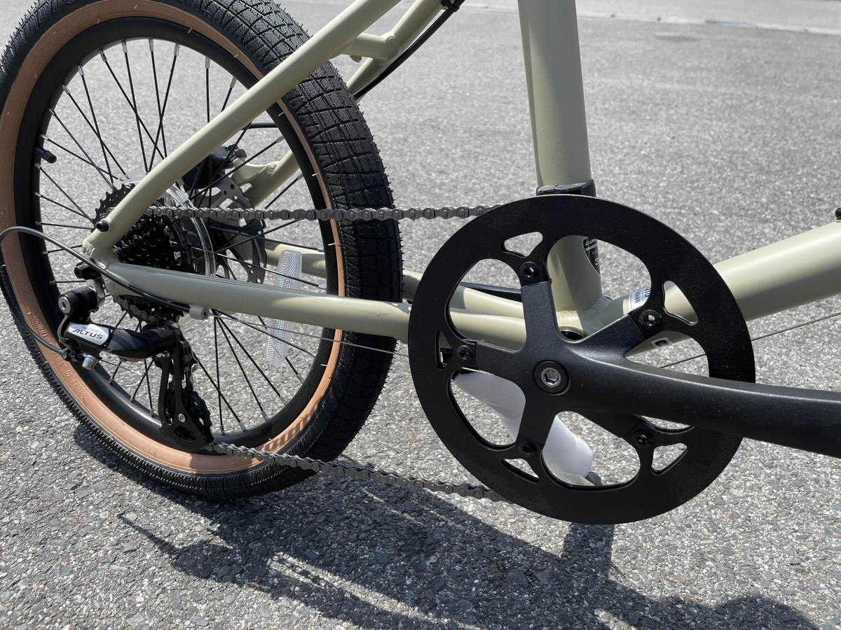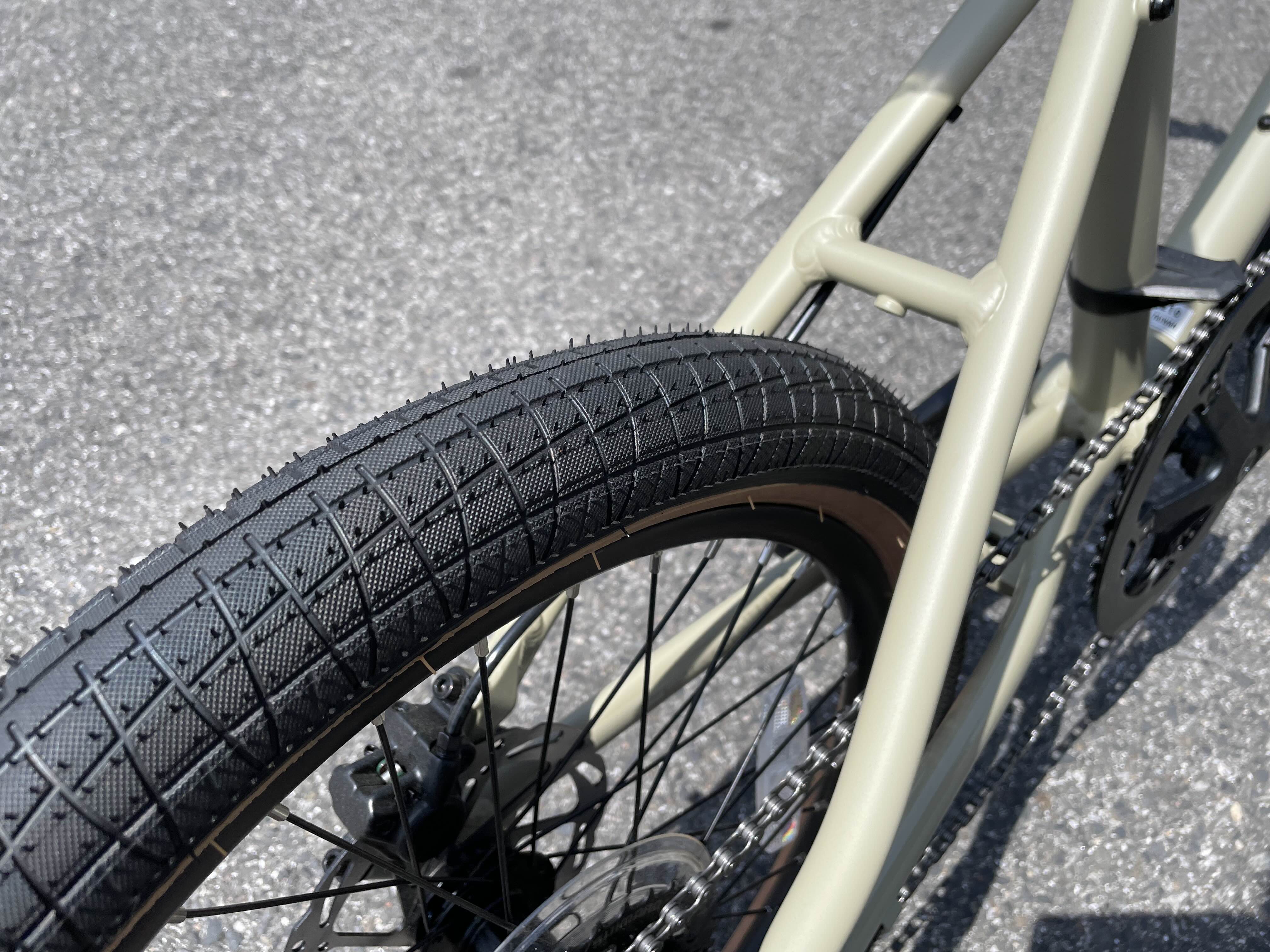20×2.3インチという、ミニベロとしては非常にボリュームのあるタイヤを装着しています。