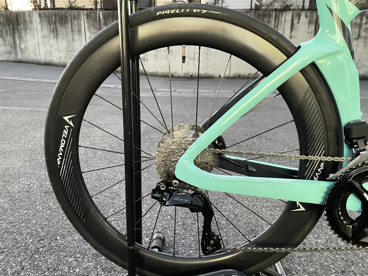 ホイールには50mmハイト・約1630gのカーボンホイール「VELOMANN V50R」を装備。