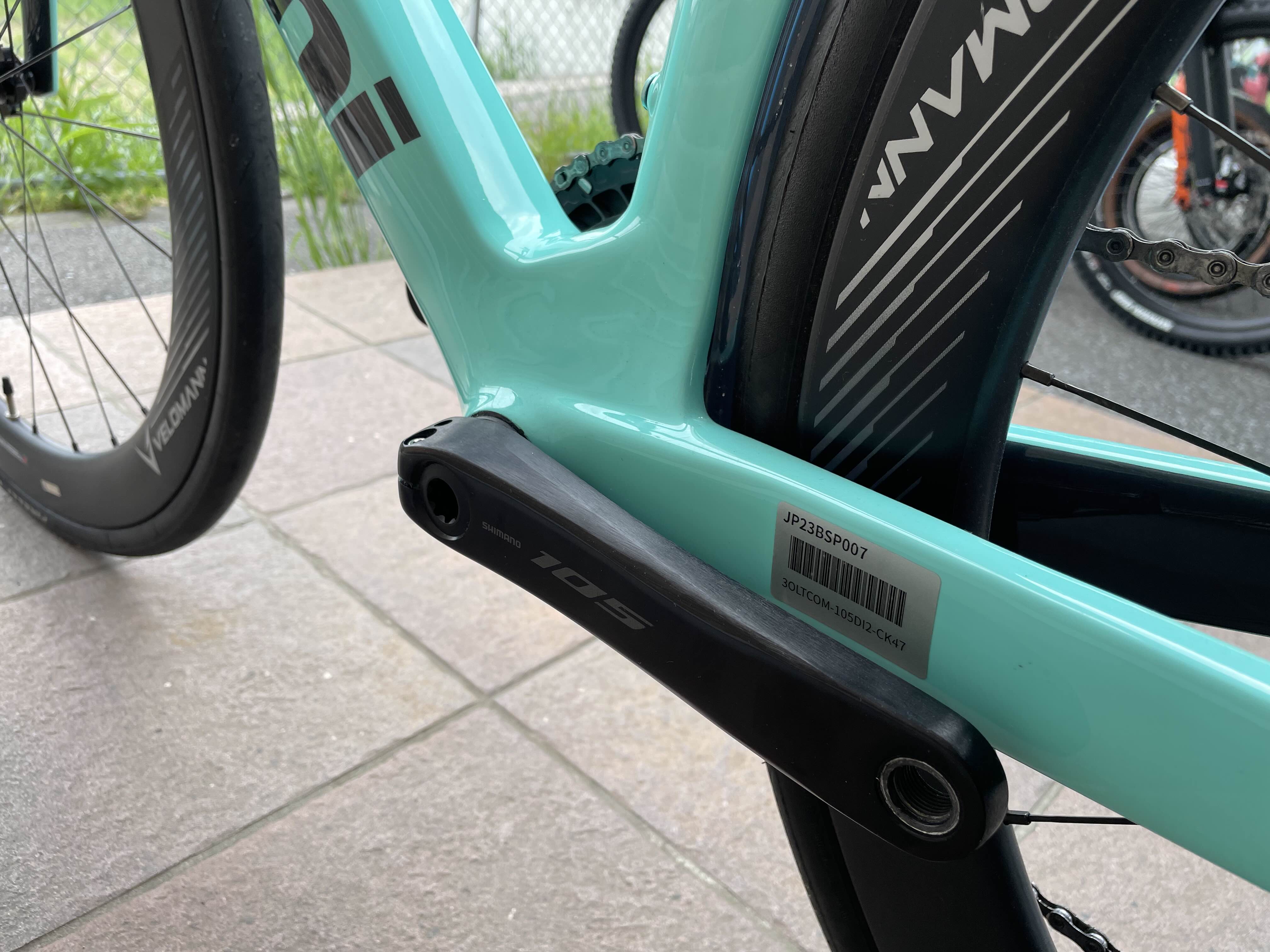 元試乗車とはいえ、約39万円で電動変速(105 Di2)+カーボンホイールを備えたエアロカーボンバイクを手に入れられる機会は非常に限られています。