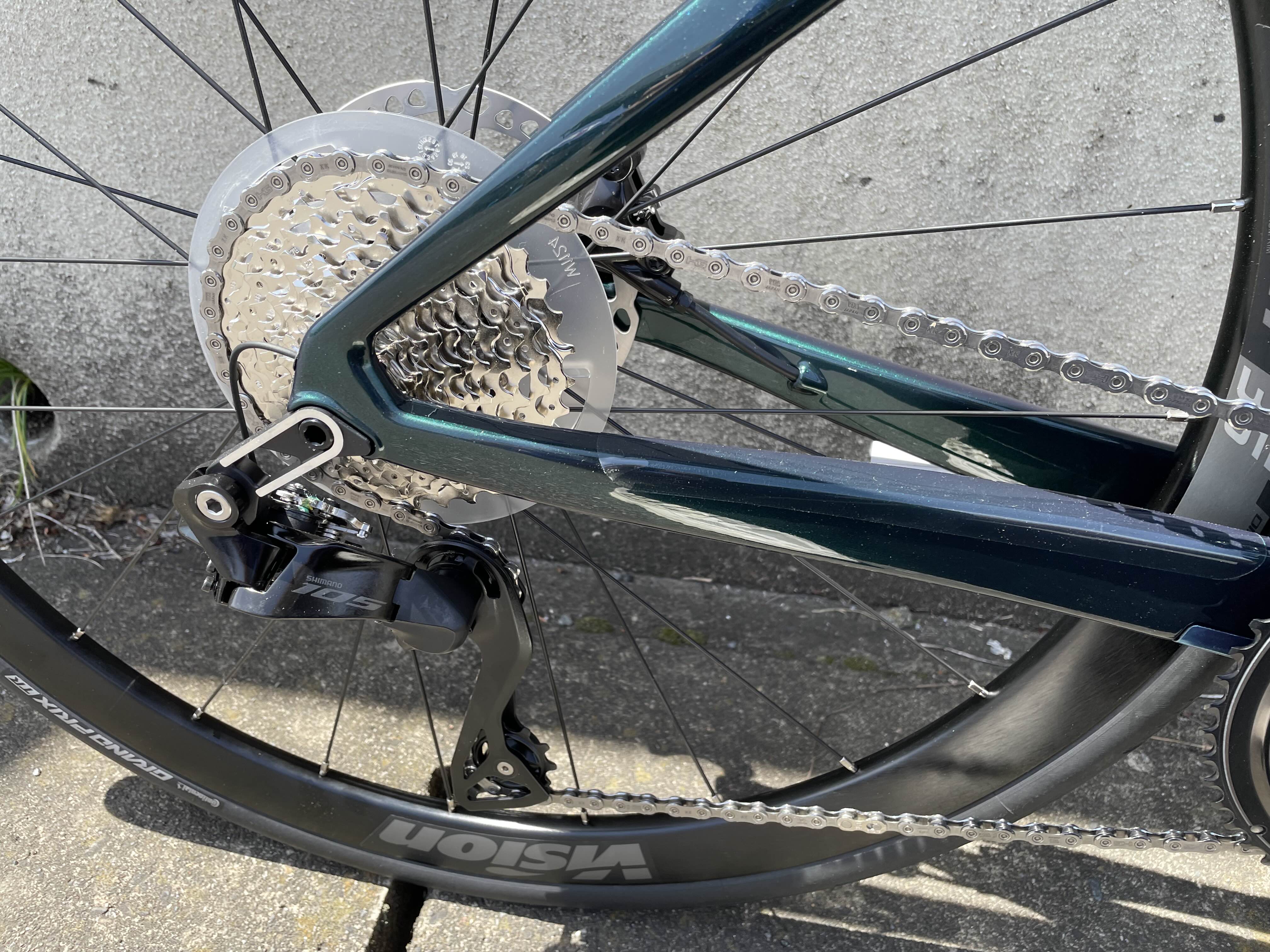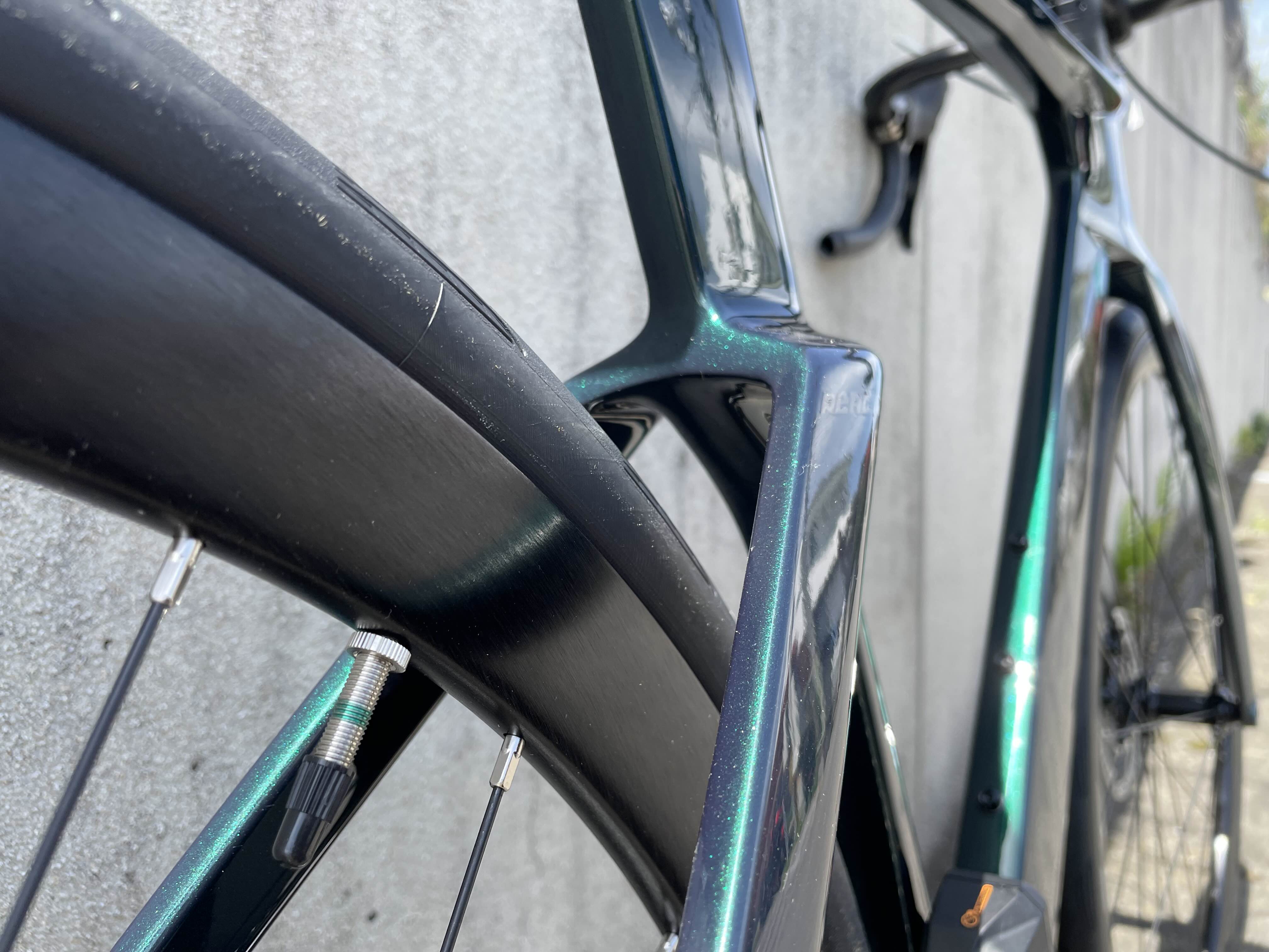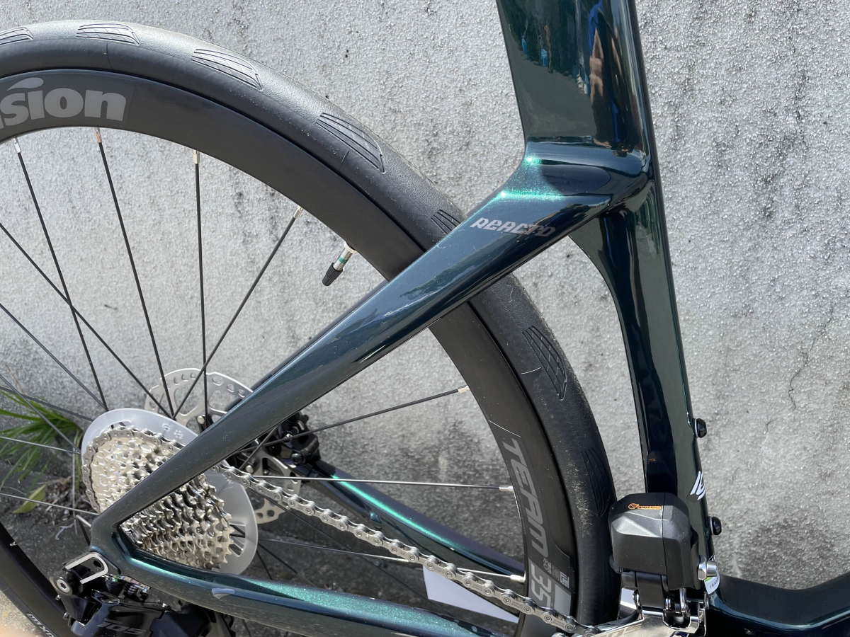 フレーム各部には空力を意識したチューブ形状が採用されており、ケーブル類も内装化されているため、空気の流れを乱しにくい設計となっています。これにより、平坦での巡航性能が向上し、少ない力でもスピードを維持しやすくなっています。さらに、シートポストやリア周りも空力と快適性のバランスを考慮した設計となっており、長時間の高速走行にも対応します。
