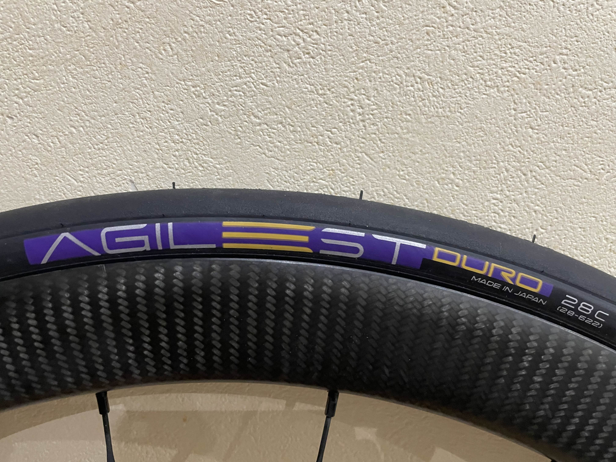 これまではAGILESTシリーズの中でも最高峰に位置づけられるレース用タイヤ「FAST」を使用していましたが、今回は用途を見直し、「とにかく長く使えてパンクの不安を減らしたい」という点を重視して「DURO」へと変更しました。DUROは耐久性と耐パンク性能に優れており、日常使いやロングライドにおいて非常に安心感のあるモデルです。多少の重量増はありますが、その分安心して距離を走れるというメリットが大きく、トレーニング用途や通勤・通学にも適しています。用途に応じてタイヤを選ぶことで、より快適で安全なライドを実現することができます。