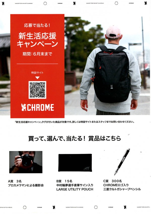 「CHROME 新生活応援キャンペーン」の対象商品4種を展示してます。