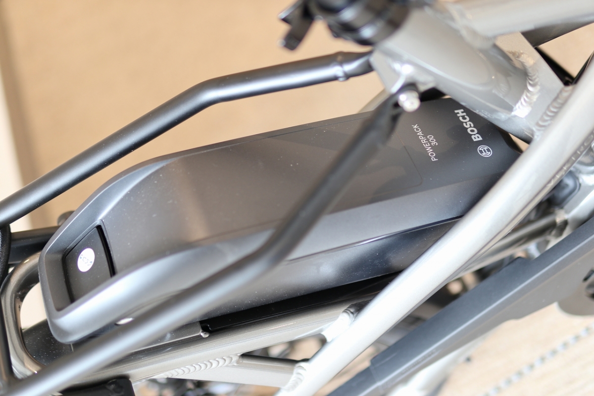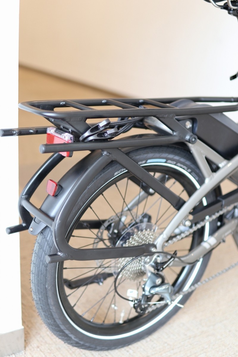 前後ライト(もちろんバッテリーから電源供給)やリアキャリアを装備して実用性が高くなっています。