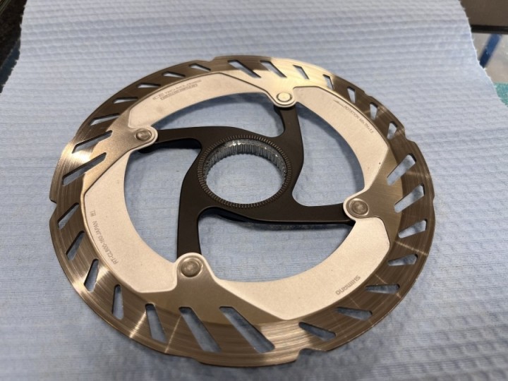 ローターの素材は外周部がステンレス。SUS410というマルテンサイト系ステンレスなのですが、どうやら強度や高度に優れた素材だそうです。スパイダーは熱処理された7075アルミニウム。厚みはSHIMANOやSRAMと同じく1.80mmです。
