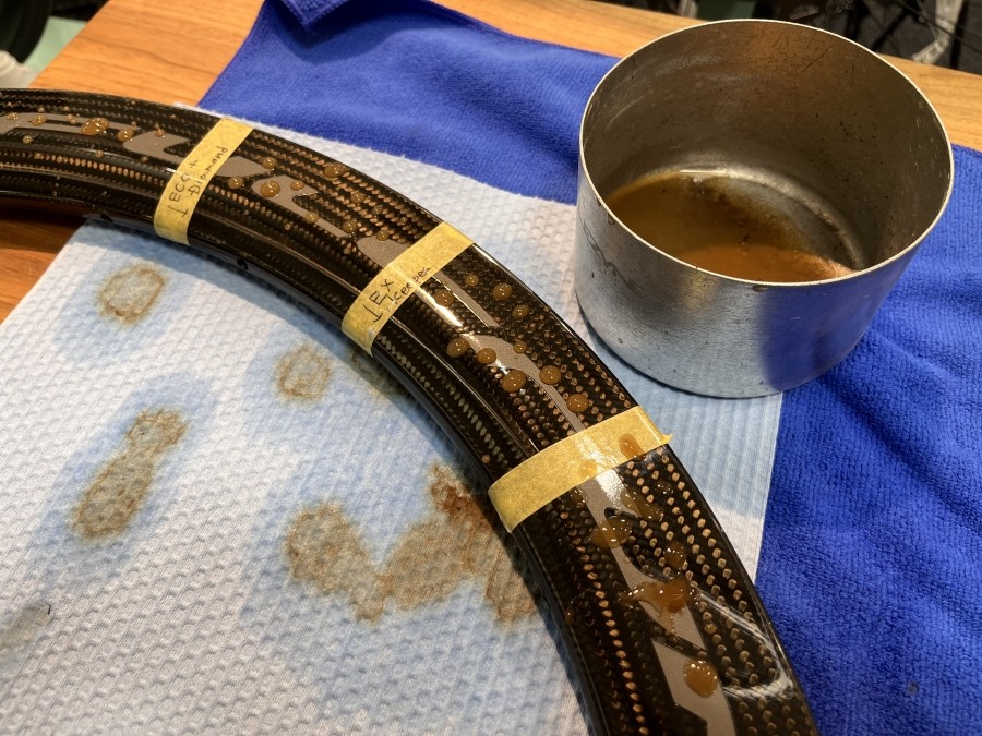 と、いう訳でとりあえずリムに霧吹きで水をかけてみました。写真はクリックで拡大出来ます。大きな写真だとわかりやすいかもしれません。